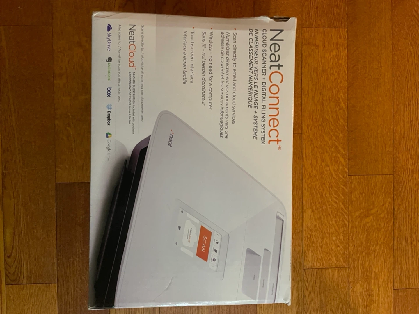 Selling a NeatConnect cloud scanner! It's a digital filing system to scan directly to email and cloud services. It's wireless, so no need for a computer. Includes the box, USB cable, welcome guide, and easy setup guide