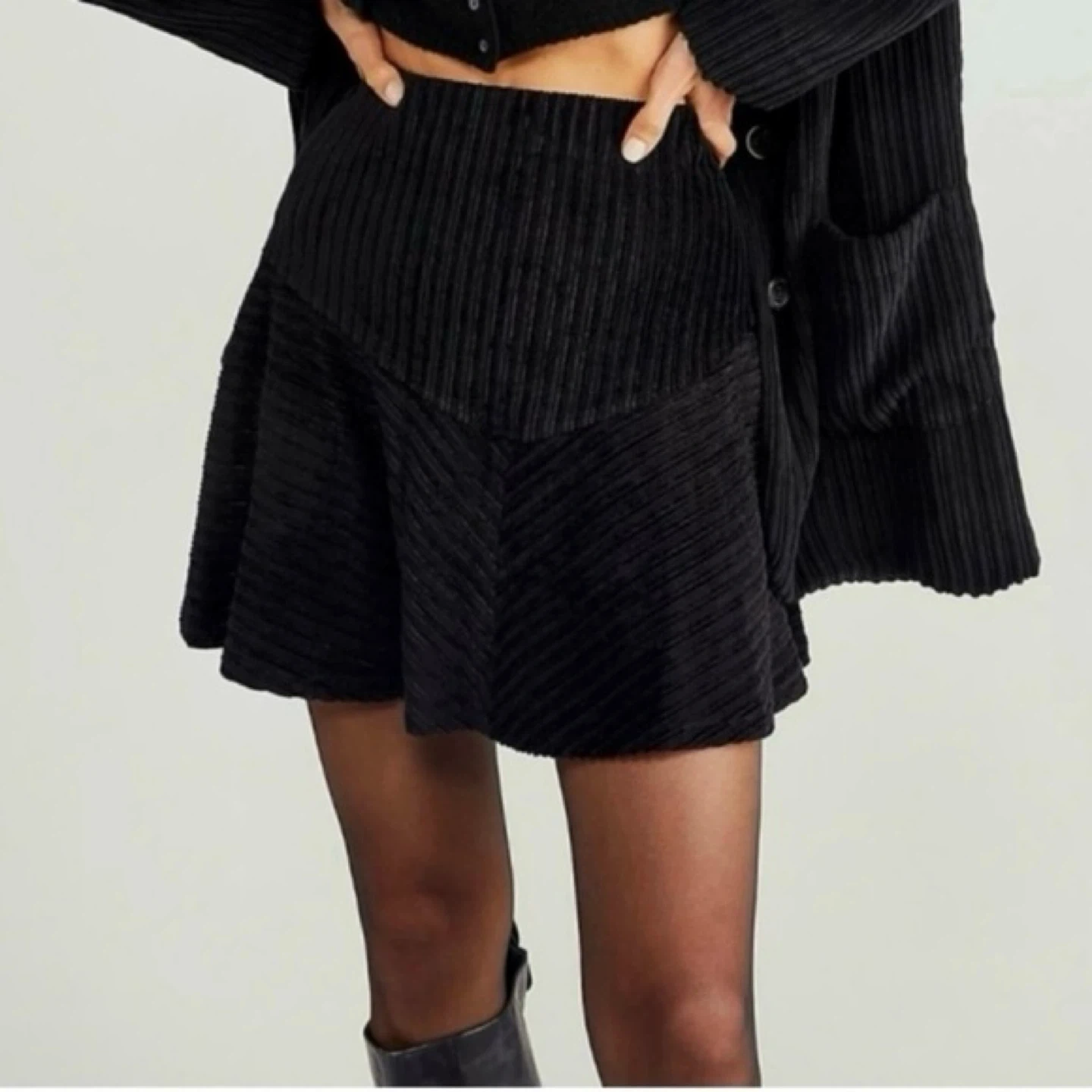 Free People - Camden Ribbed Black Skirt -Size Small