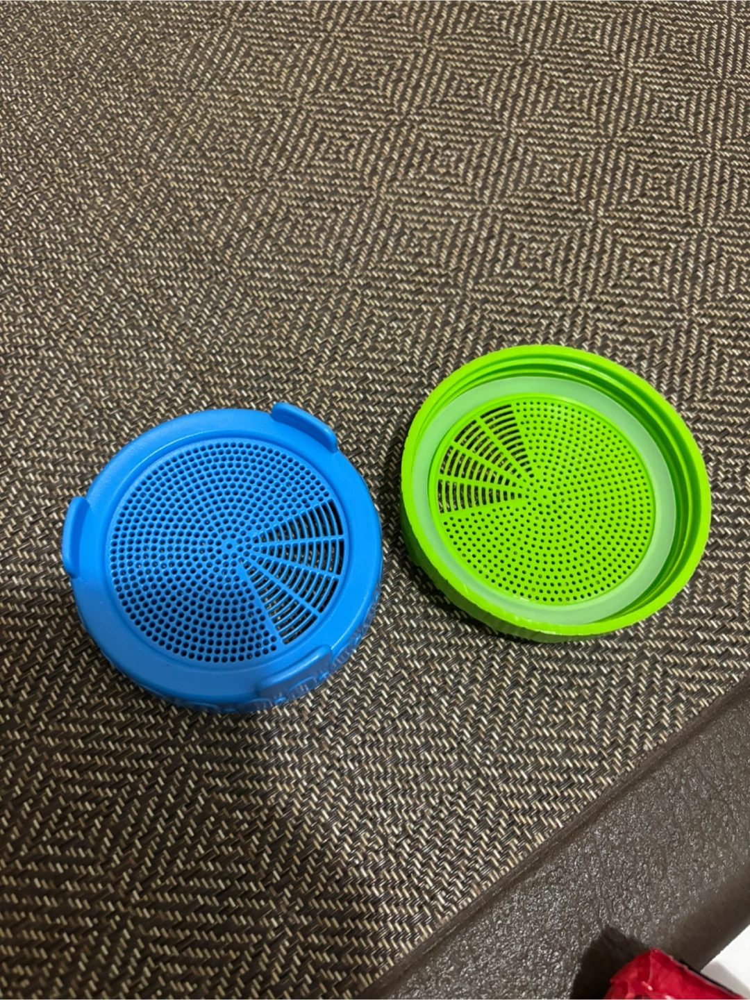 Selling a set of sprouting jar lids in blue and green. They're in great condition and ready to help you grow your own sprouts at home! $5 for both or $3/each