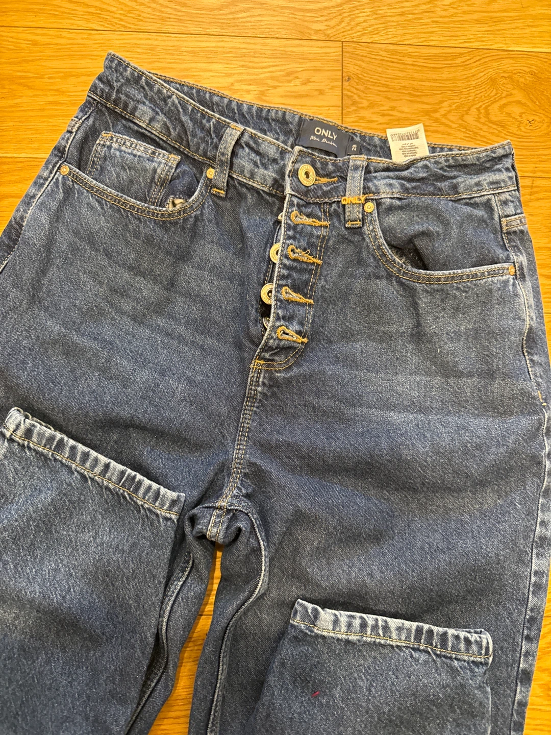 Selling a pair of ONLY brand denim jeans in dark blue. They are a size 29 and feature a stylish button-up front. Perfect for a casual look!