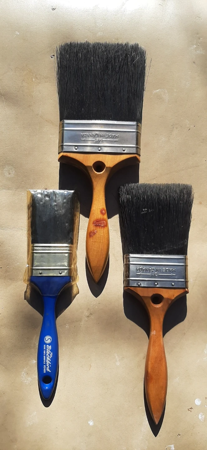 Selling three paint brushes. One is a Blackbird brand with a blue handle, and the other two have wooden handles and are made in Canada. Sizes vary. Similar or identical brushes are selling between $10-$15 each. Priced for a quick sale at $5 for all three. Yes it's available if you see the ad up. FCFS. No holds or E-Transfers. Cash only.