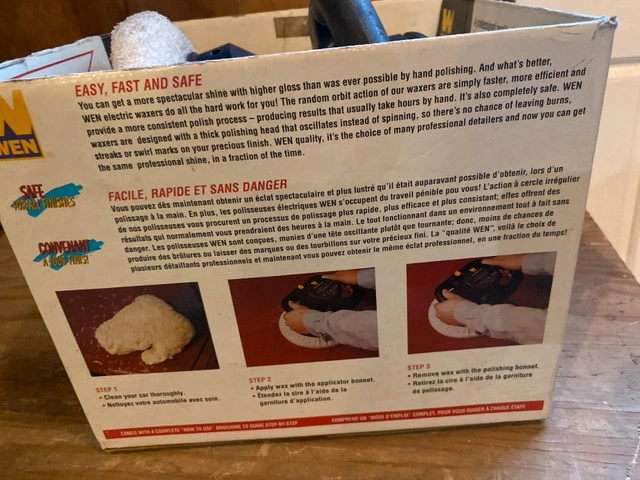 26I'm selling a Wen 10" Random Orbit Waxer/Polisher, perfect for achieving a professional quality shine on your car. This item is used, but still works wonders. Key Features: * 10-inch random orbit polisher * Easy to use for various polishing tasks * Designed for cars, boats, and more Looking to add some shine to your projects? This polisher is ready to go! And remember, if the ad is up, it’s available, so don’t hesitate! Based on recent Kijiji sales, similar waxers/polishers are listed between $20 and $50. Given the condition, I've priced it competitively for a quick sale.