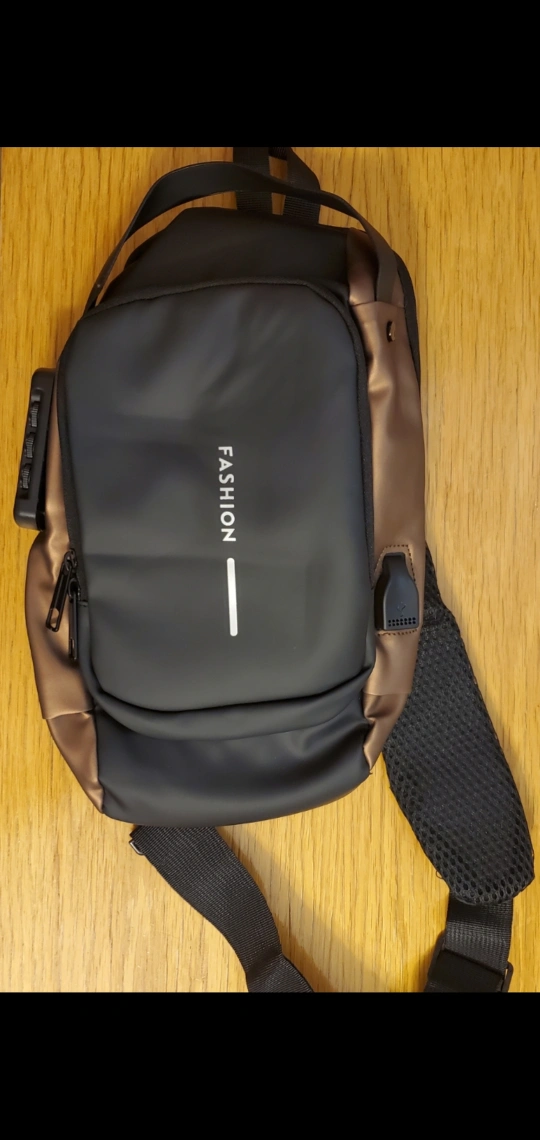A sleek sling bag. Features a locking mechanism. Offers multiple pockets. Includes a comfortable strap. A perfect way to keep your valuables close and safe, wouldn't you say.