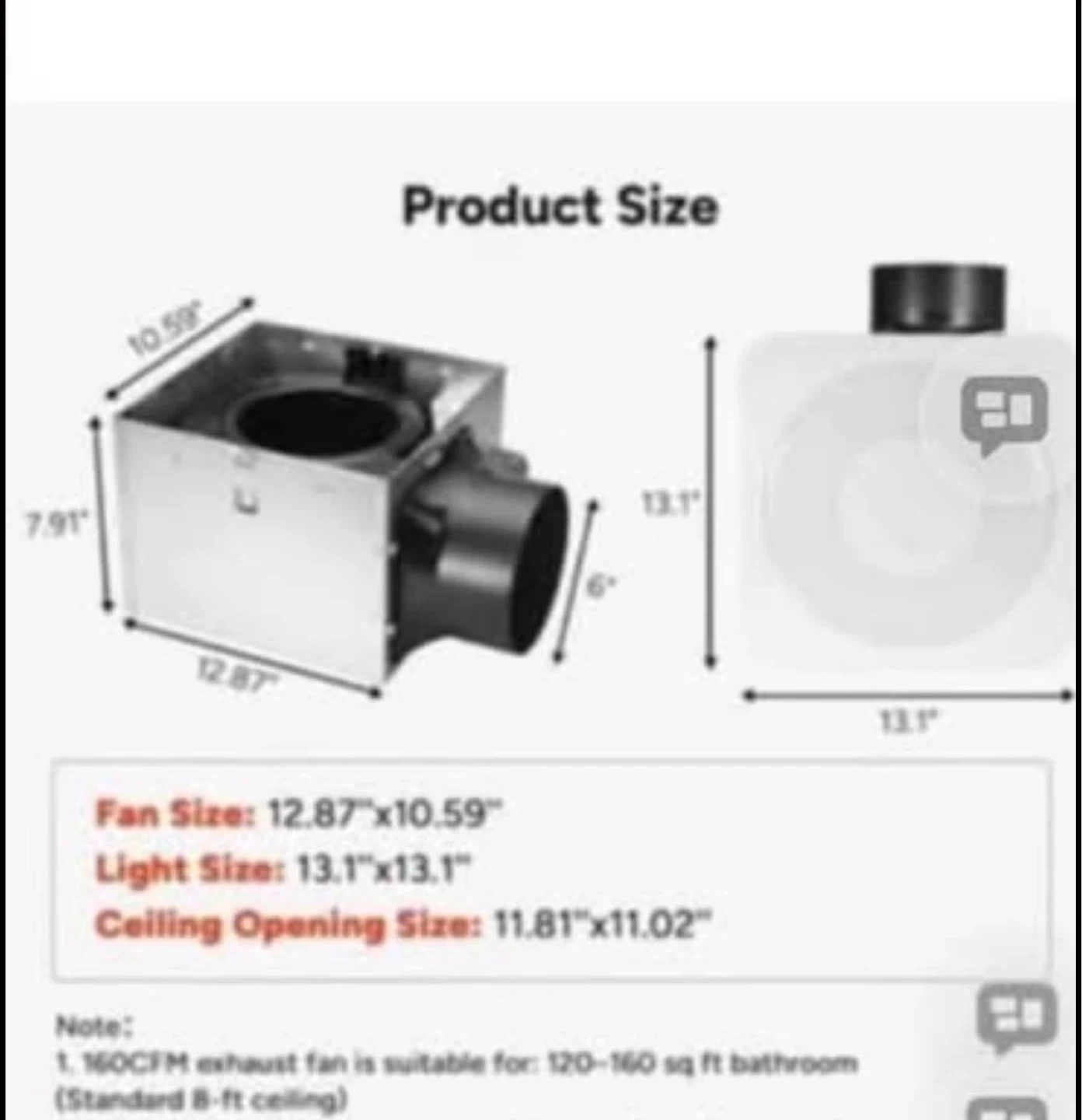 OREiN 3-in-1 Bathroom Exhaust Fan with Light & Humidity Sensor, 160 CFM, 1500LM, 3000K/4000K/5000K, 2200K Night Light, Auto-On at 60% Humidity, ETL & FCC Certified, Cut-Out 11.81" x 11.02" brand new in the box