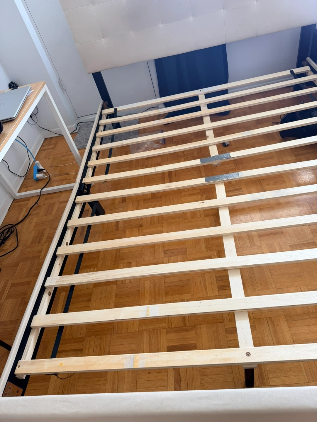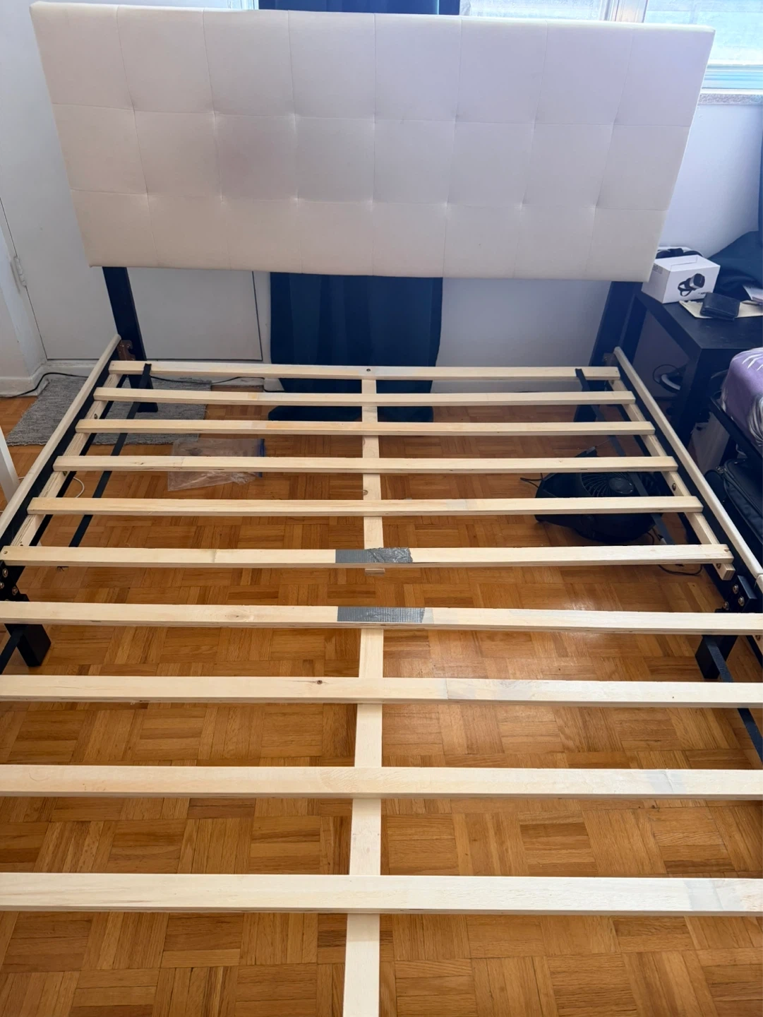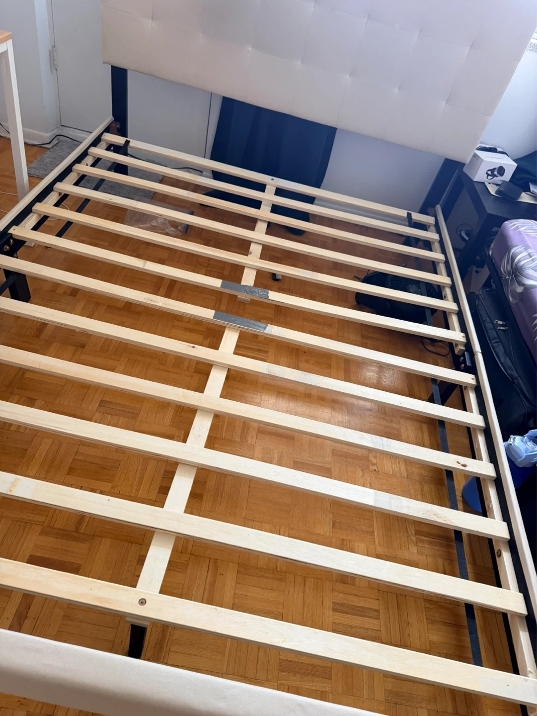 Upholstered Headboard Bed Frame with Wooden Slats