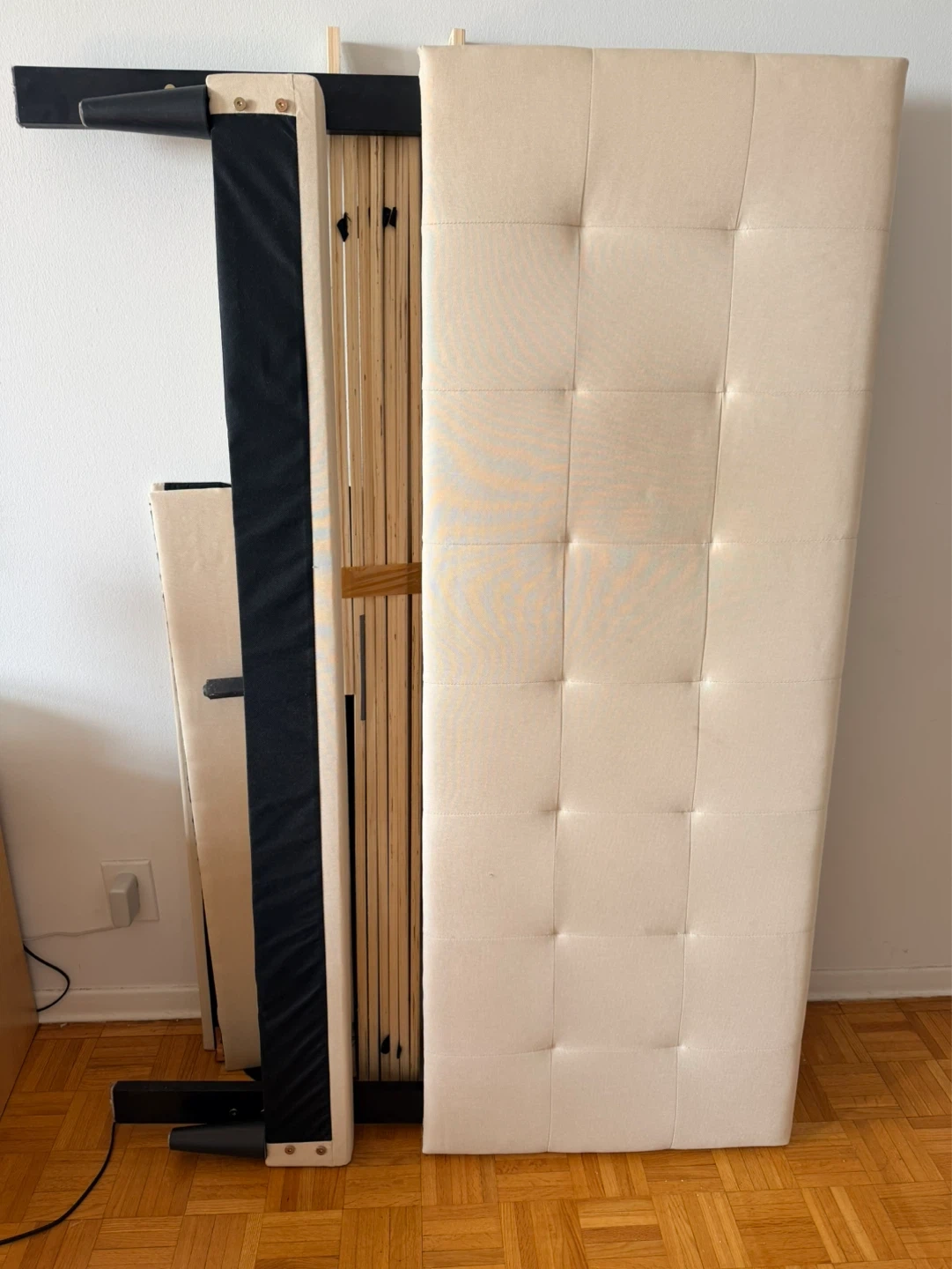 Upholstered Headboard Bed Frame with Wooden Slats