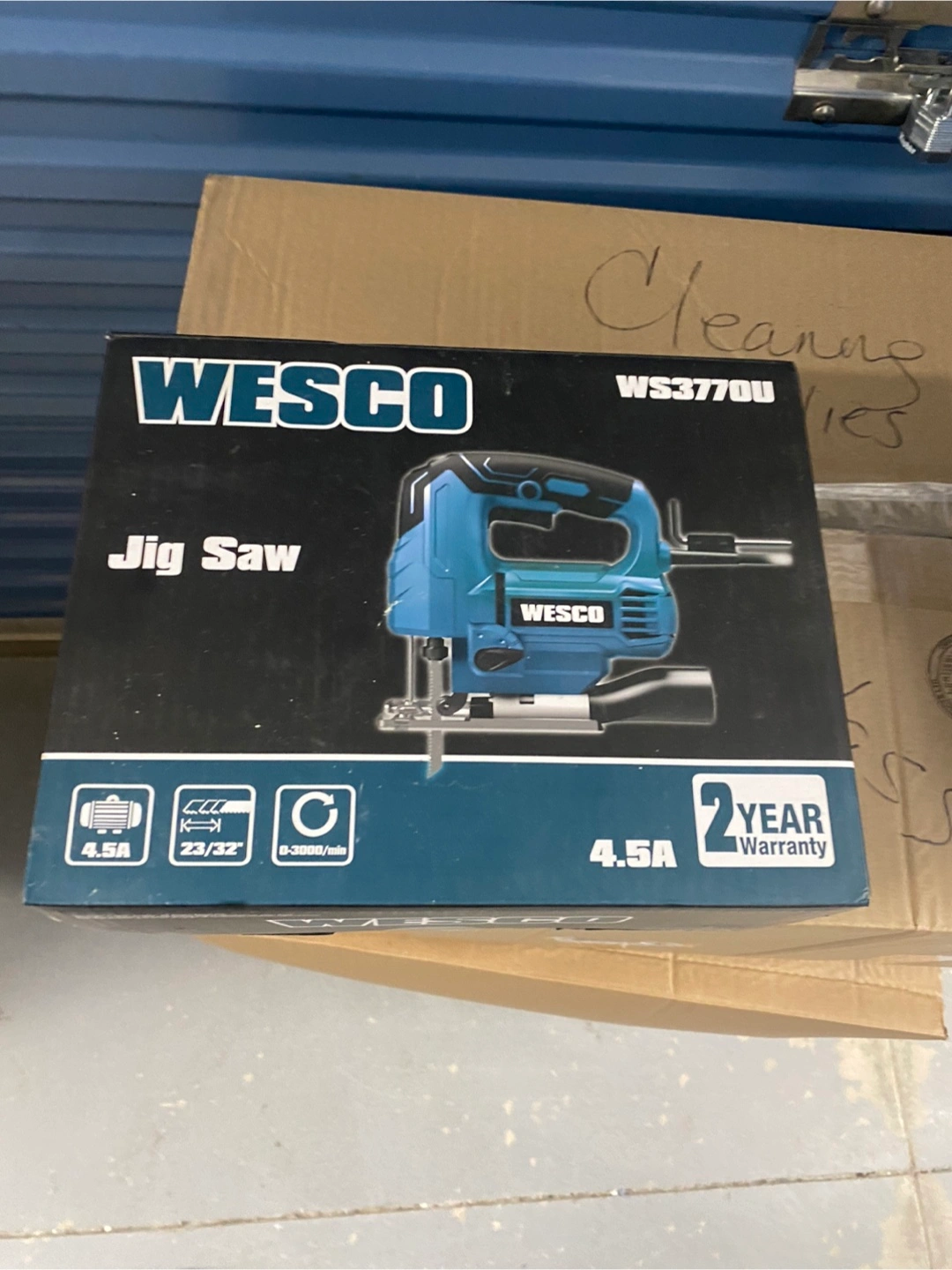 Selling a brand new Wesco WS3770U Jig Saw, still in its original packaging! This powerful tool is ready to tackle any woodworking project. The jig saw operates at 0-3000/min and has a 4.5A power rating. Get this new jig saw today!
