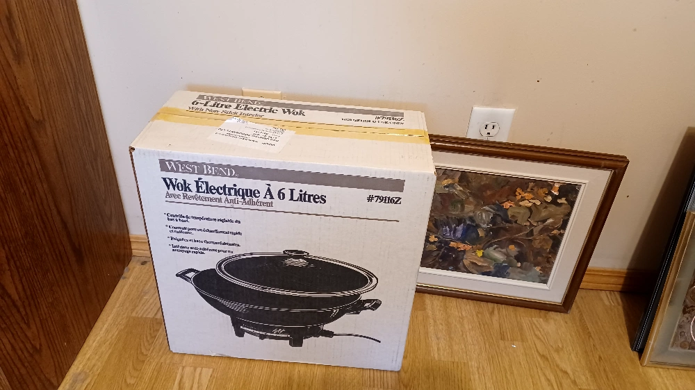 Electric wok with non-stick interior. Features temperature control, removable handle, and an anti-adherent coating. never being open