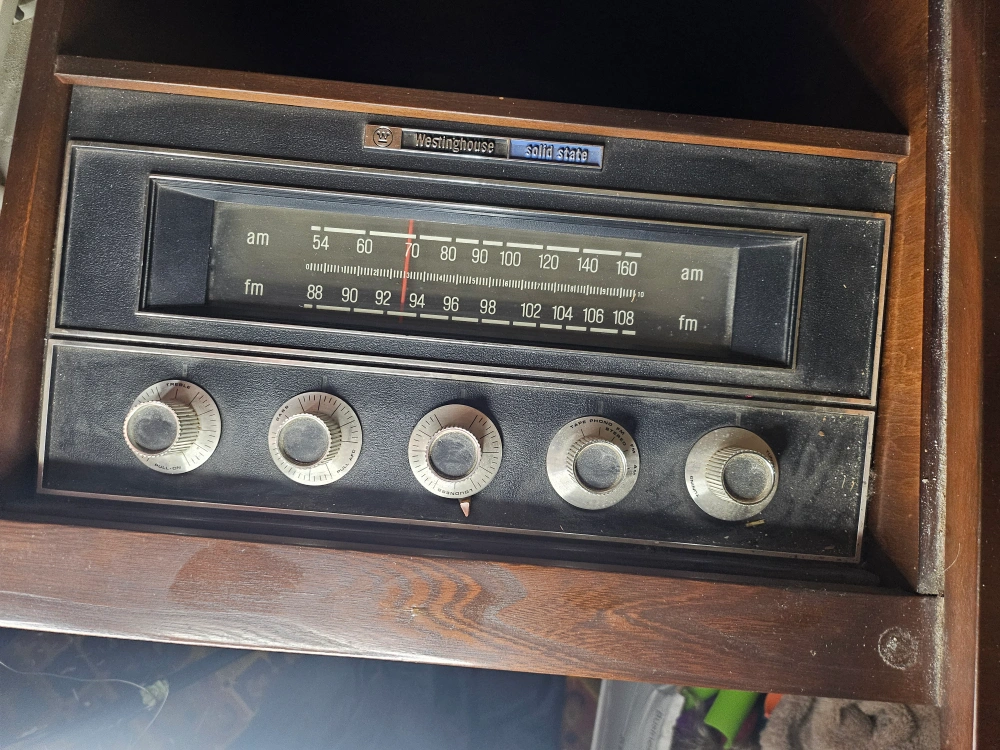 Relive the golden age of music with this vintage Westinghouse State record player and radio console! This unit has an AM/FM radio, and record player. This console is in functional condition, but shows cosmetic signs of age, record player also needs a new needle. A nostalgic piece ready to bring retro charm and tunes to your space! Features: AM/FM Radio, Record Player Imagine this beauty serenading you with your favourite vinyls! Just a friendly reminder that if the ad is up, it's still available for grabs!