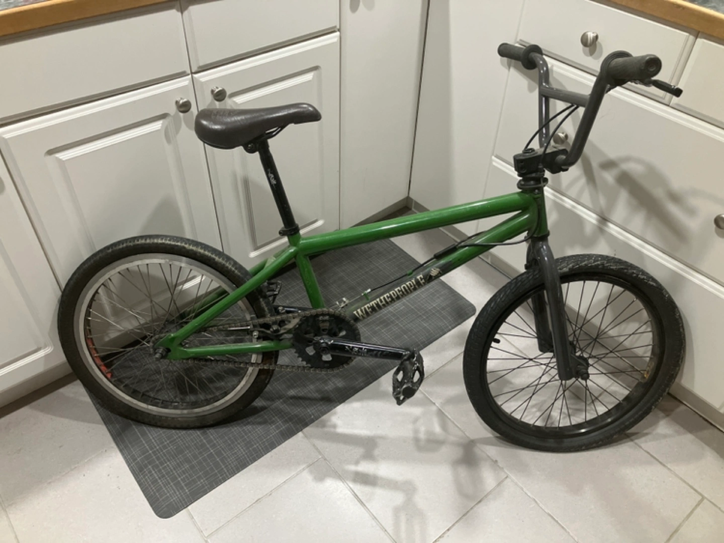 88Green BMX bike. Good used condition. Includes pedals and seat. It has a loosening crank, needs a tightening here and there. Or crank replacement. Have two spare tubes and an Allen key set for the crank.