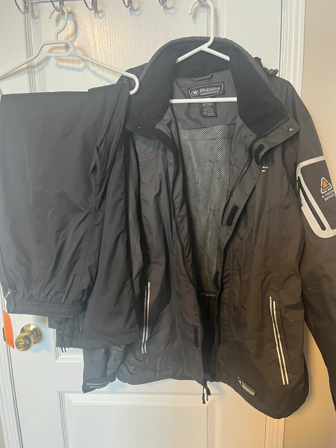 92Selling a WetSkins X-Treme Series rain suit in size XXL. This set includes both the jacket and pants, perfect for staying dry during rainy days. It's in great condition and ready for its next adventure!