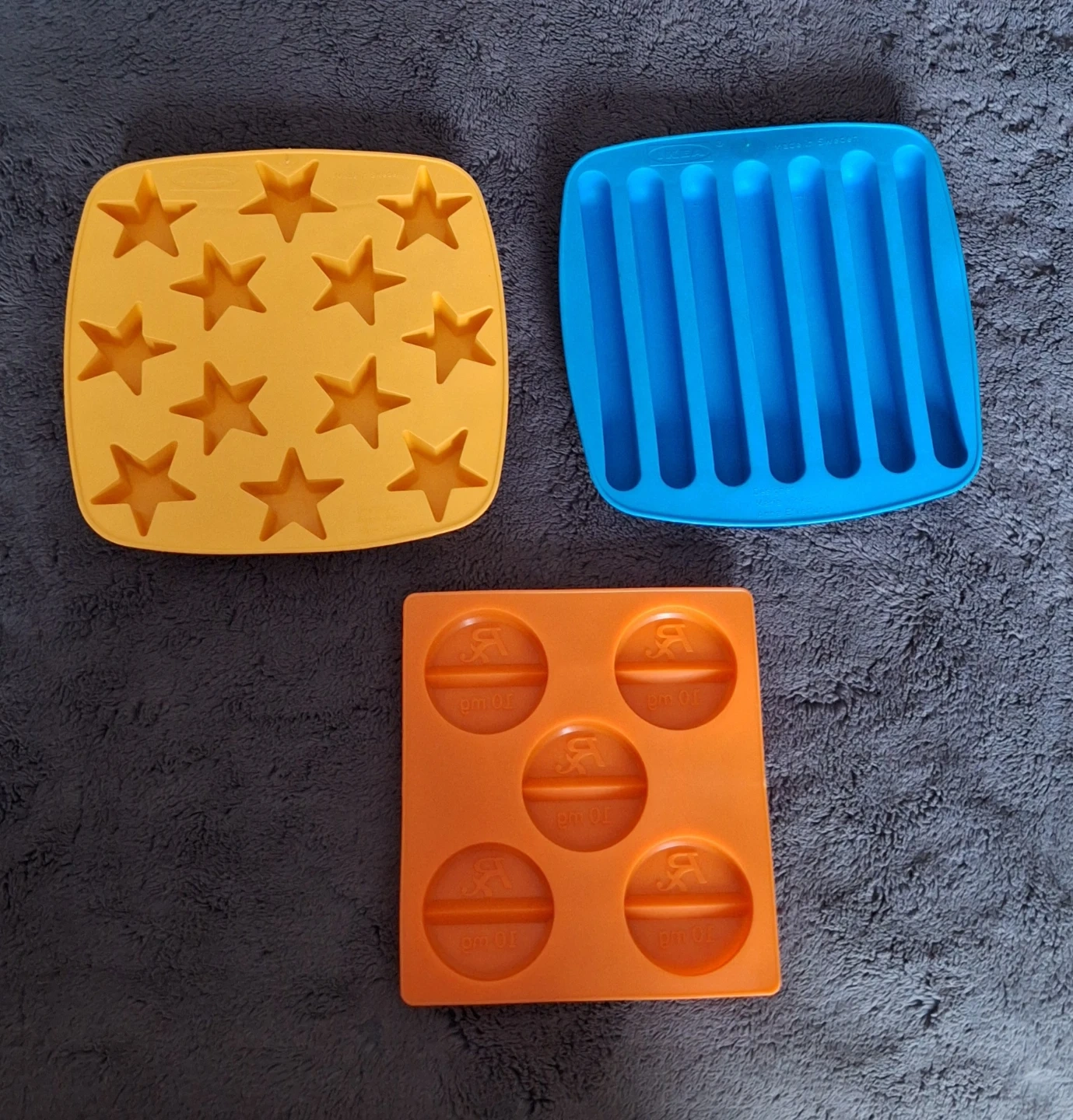 Selling a set of three IKEA ice cube trays! Includes a yellow star-shaped tray, a blue rectangular tray, and an orange round tray. Great for making fun and unique ice cubes for your drinks