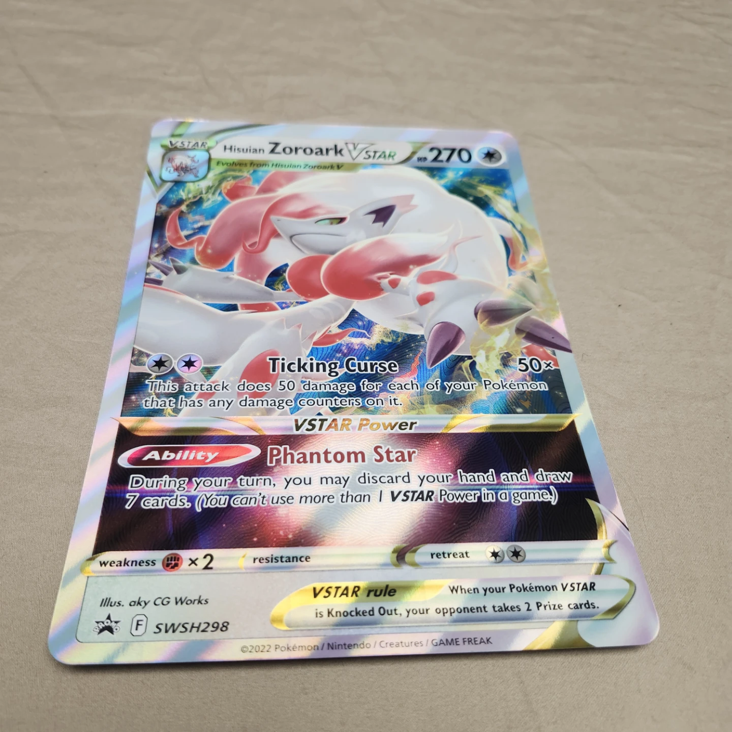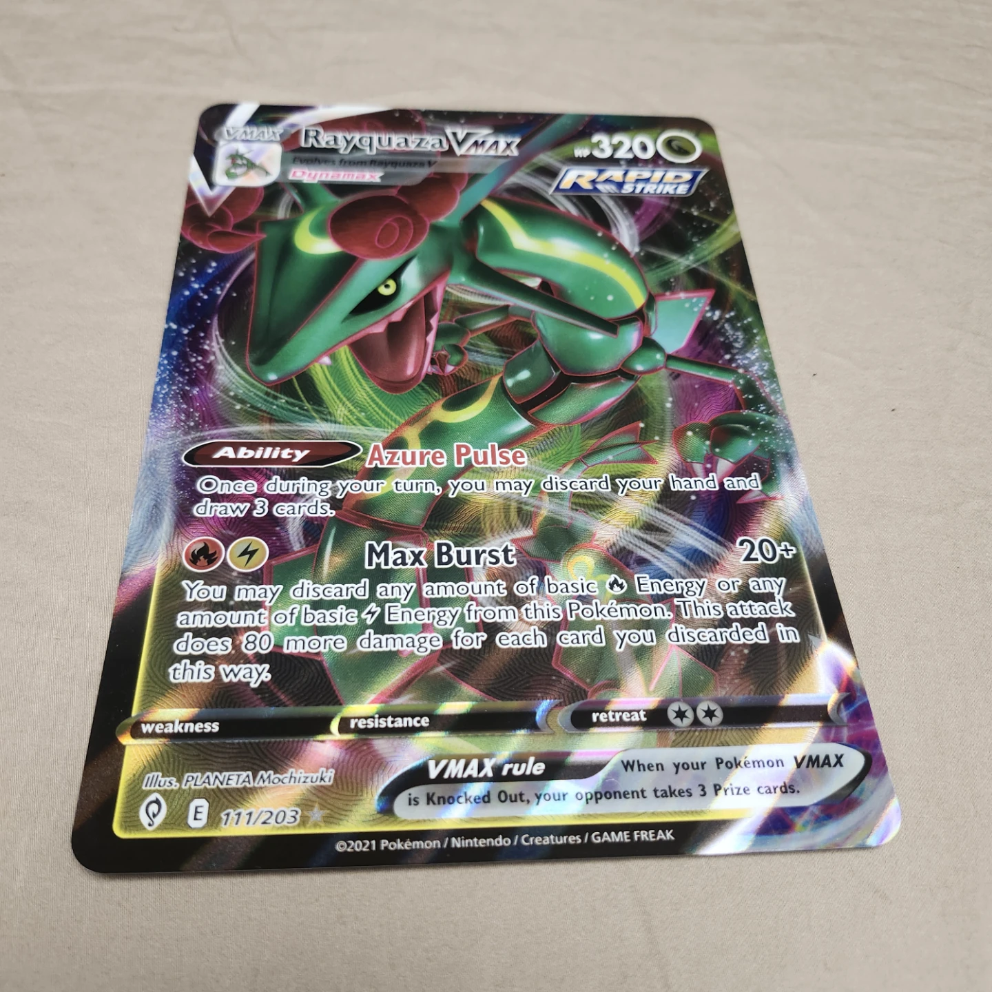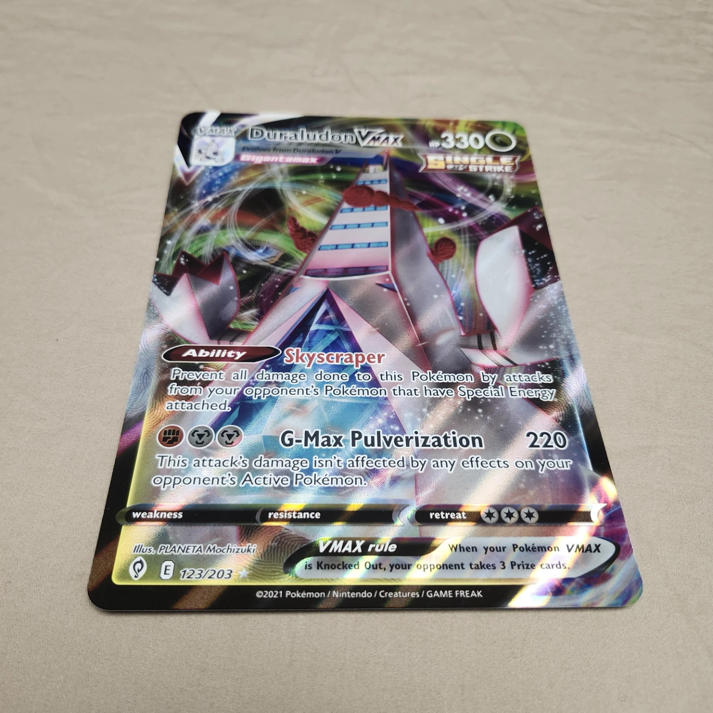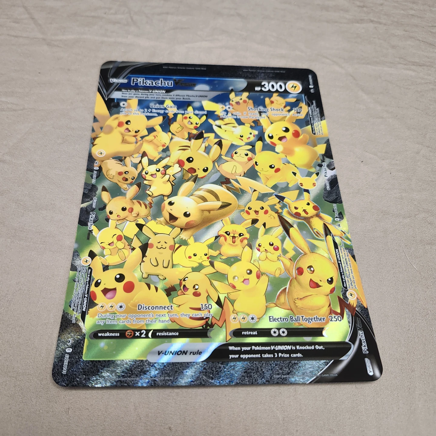 Bundle includes 12 JUMBO Pokemon trading cards: Dark Sylveon V, Duraludon VMAX, Alolan Exeggutor V, Hisuian Zoroark VSTAR, and Rayquaza VMAX, Koraidon x2, Dragapult, Lance's Charizard V, Pikachu V-Union, Pikachu, GOLD Pikachhu & Zekrom GX. All cards are from the Pokemon universe. Opened to sleeved. These are great for collectors or players! THESE HAVE NOT BEEN PLAYED WITH.