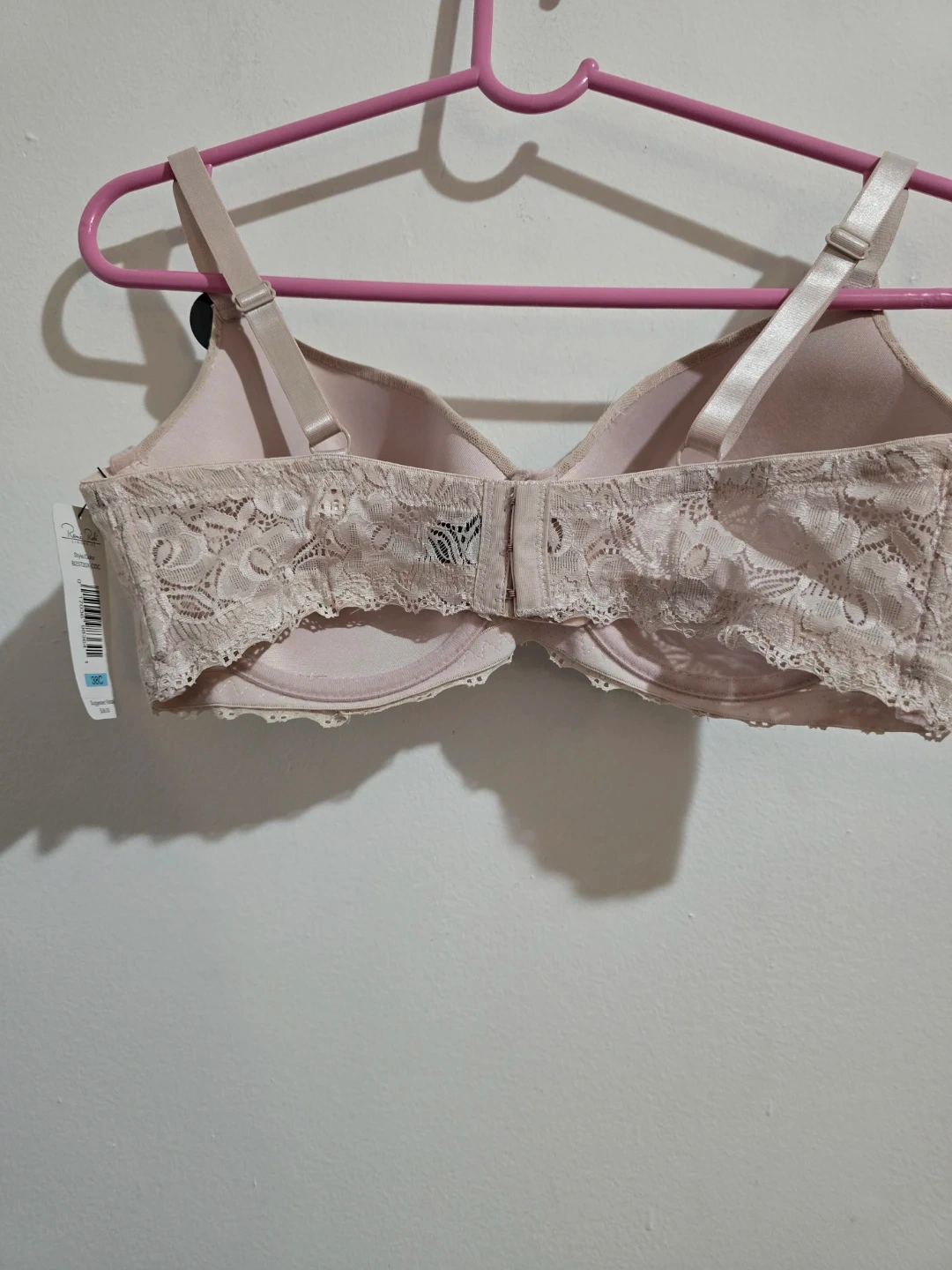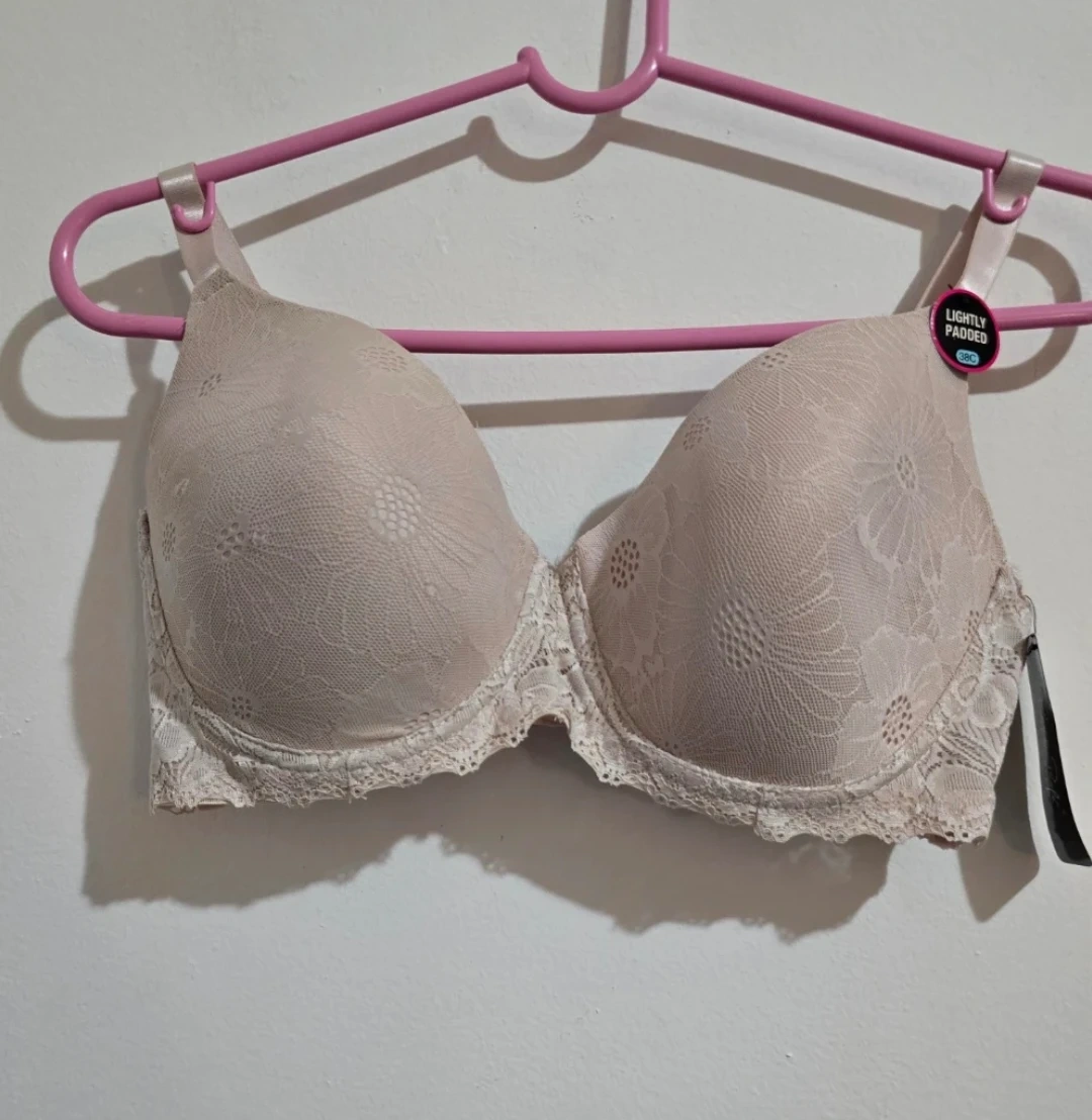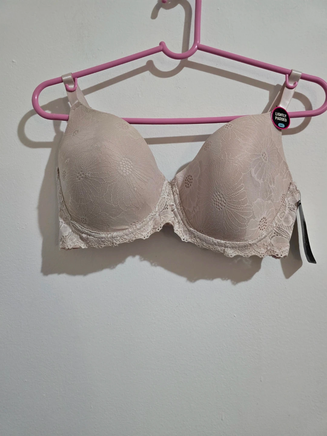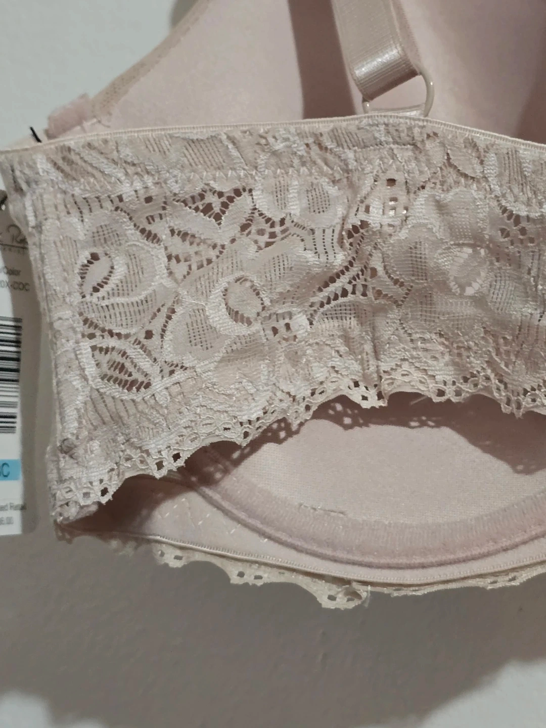 This Rene Rofe bra features a lightly padded design with intricate lace detailing. It's a size 38C with an adjustable strap for a comfortable fit. A beautiful addition to any lingerie collection!