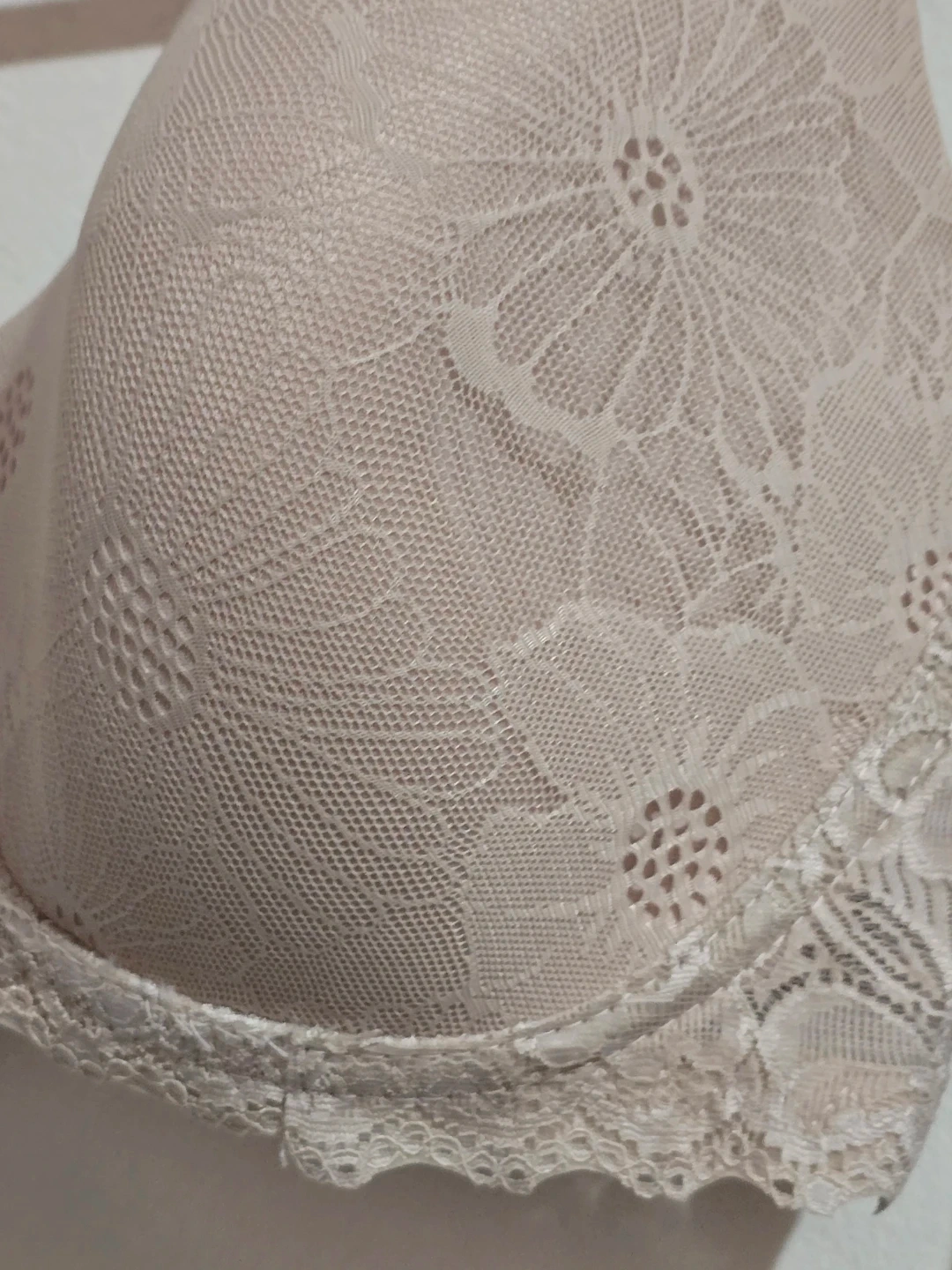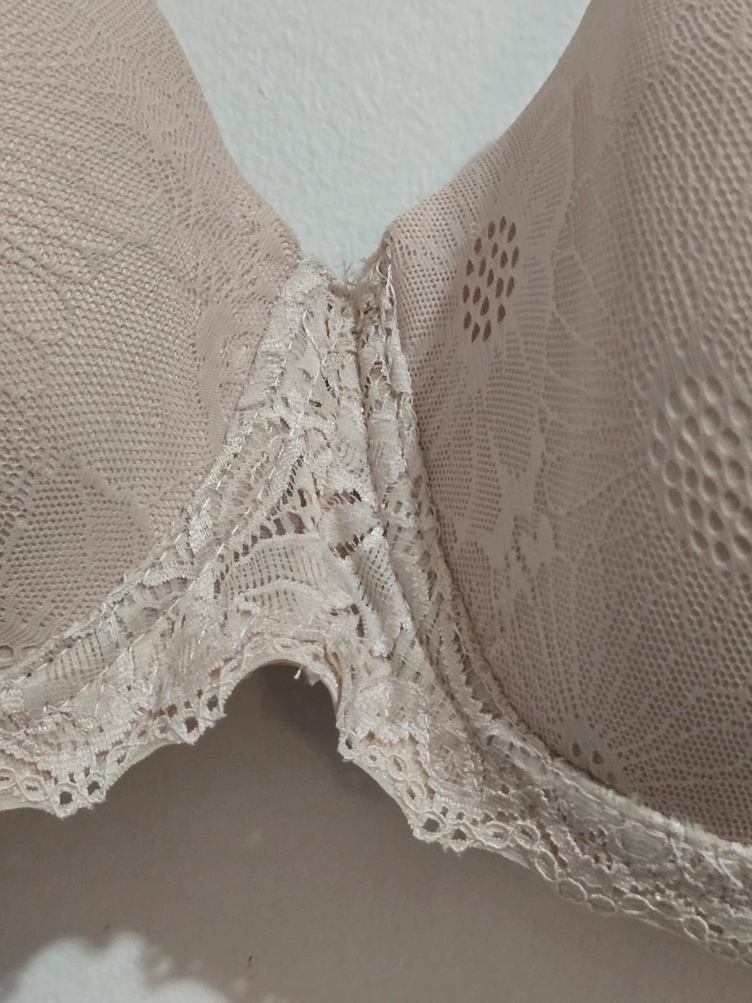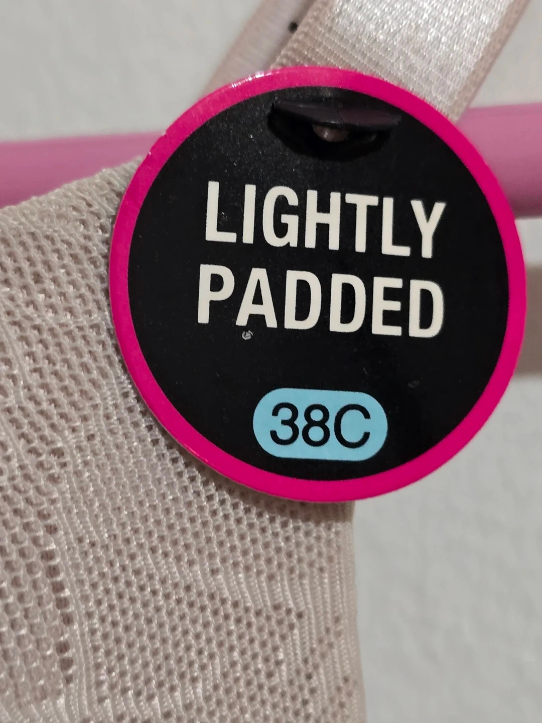 This Rene Rofe bra features a lightly padded design with intricate lace detailing. It's a size 38C with an adjustable strap for a comfortable fit. A beautiful addition to any lingerie collection!