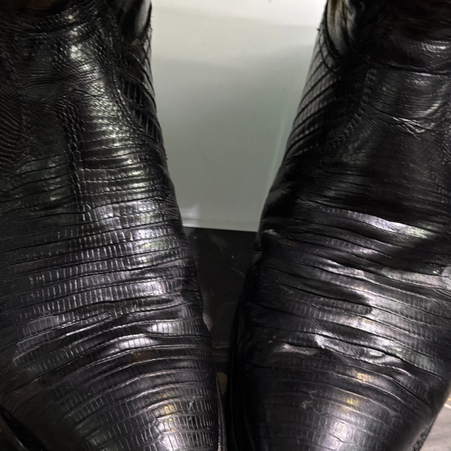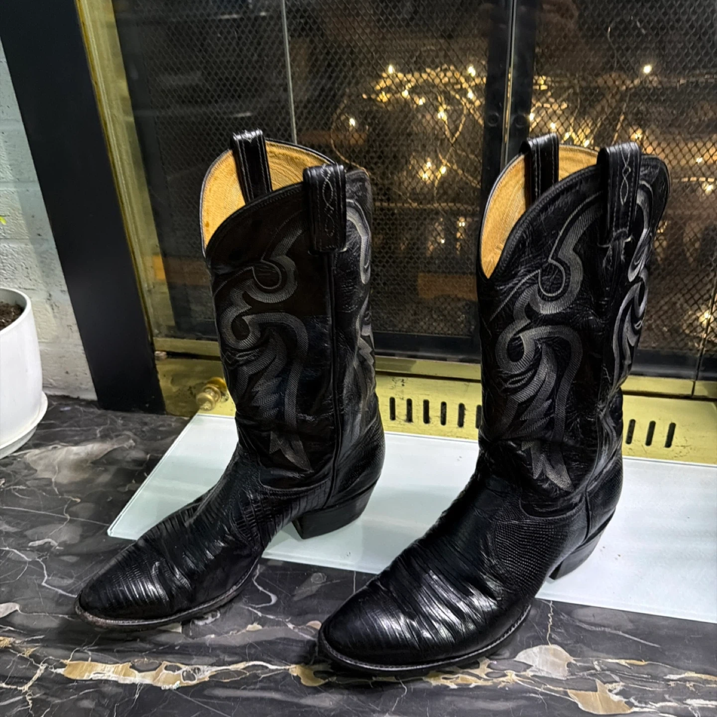 Buy & SellBlack Leather Cowboy BootsBlack Leather Cowboy Boots$98These are black leather cowboy boots with intricate stitching. The textured material appears to be lizard. Soles show some wear.ConditionLike newWHERE TO MEETCheck LocationView MapSELLERverifiedDraganAstoria51152 reviews0 chats·0 favorites·9 viewsSEND CHAT TO SELLERHi Dragan! I’m interested in your listing.Hi Dragan! I’m interested in your listing.Get the Karrot app to chatSign In to chat