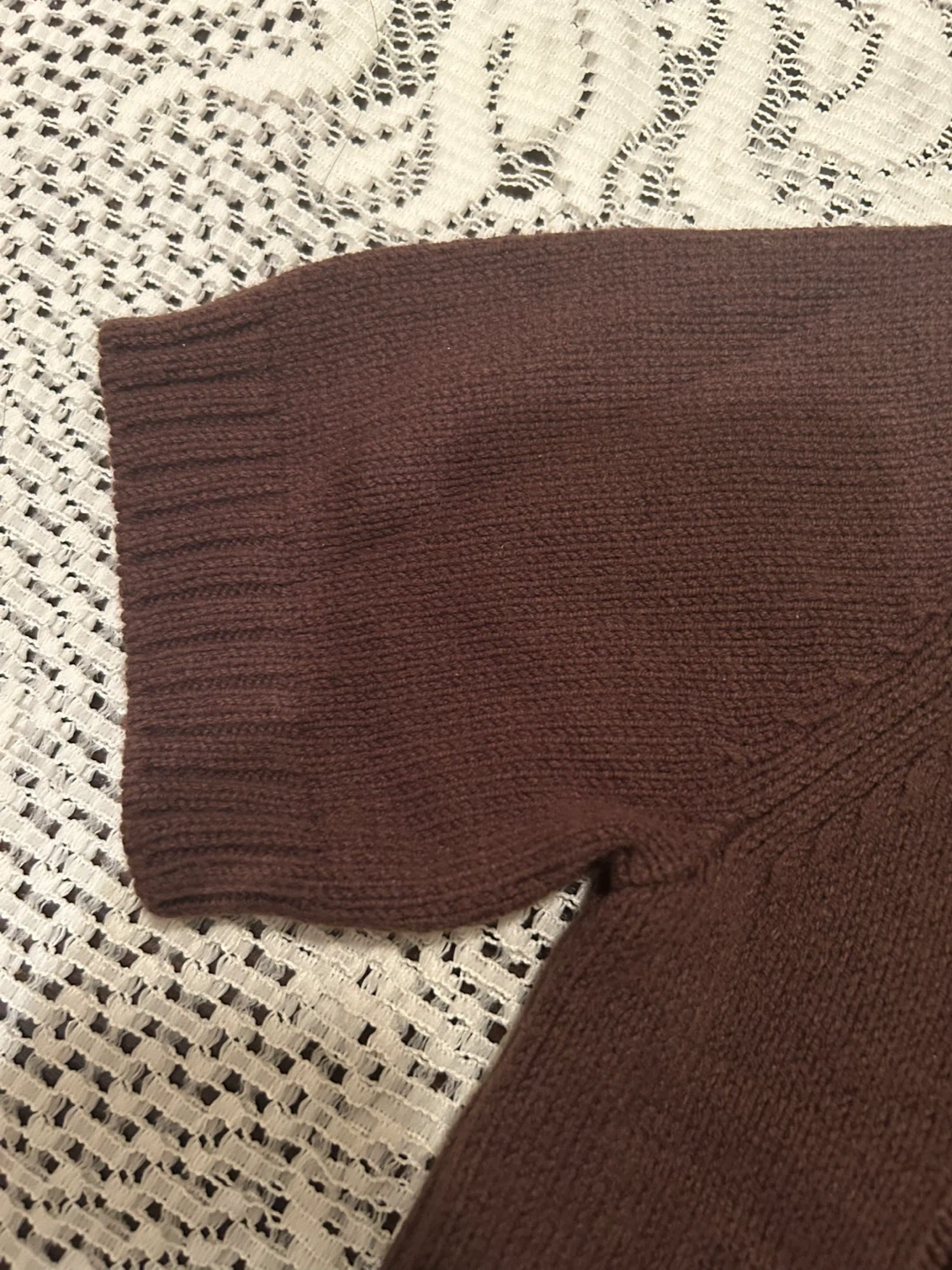 This Gymboree sweater dress is brown with a cute pink owl applique on the front. It features colorful striped detail at the hem. The dress is made from 60% cotton and 40% acrylic