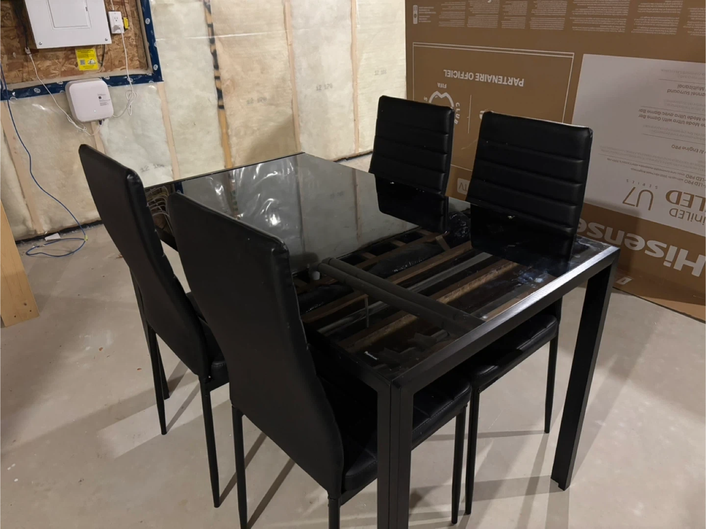 Black Glass Dining Table with 4 Chairs