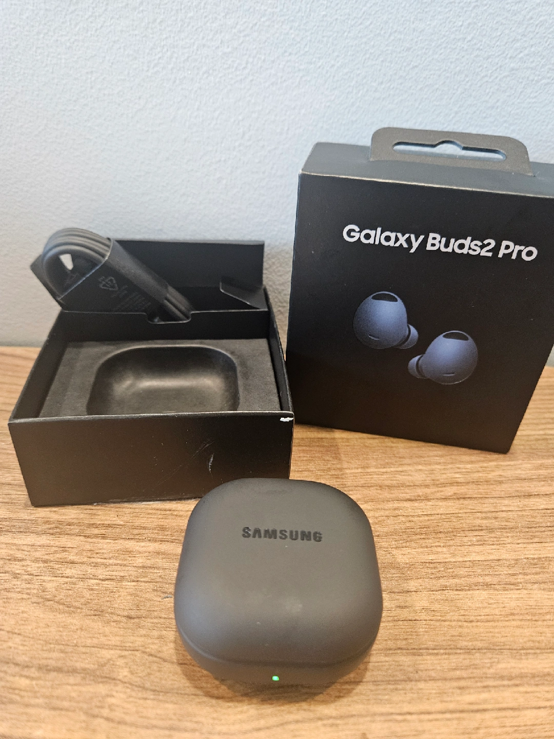 Selling a pair of Samsung Galaxy Buds2 Pro in graphite. They are in like-new condition and come with the original box and included components! These earbuds are lightweight and portable, making them perfect for on-the-go listening