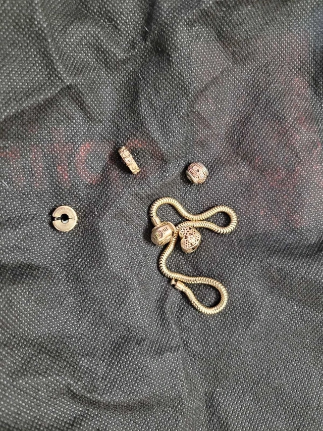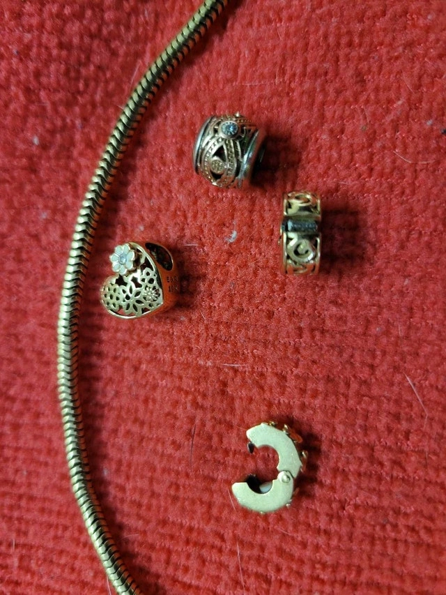 Exquisite Micheal Hill 10 kt Gold Bracelet with 1 small Diamond and 5 Emma Reo 10 kt Gold Charms. There is 1 Heart ❤️ shape pink 10kt charm, 2 round 10 kt charms, and 1 two-tone round ball containing 3 Diamond 10 kt Yellow Gold surrounded by white sterling silver. All pieces are marked and in excellent condition. Asking $2000. Pick up at the OPP POLICE STATION PARKING LOT ON CAMPEAU STREET. Thank you.