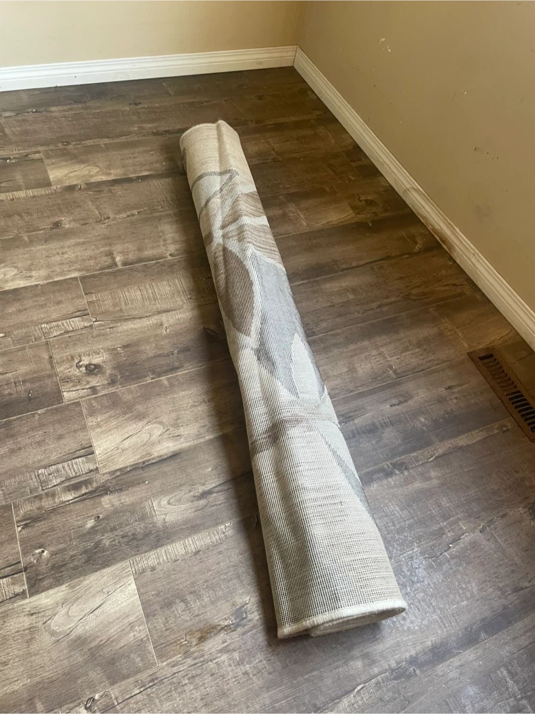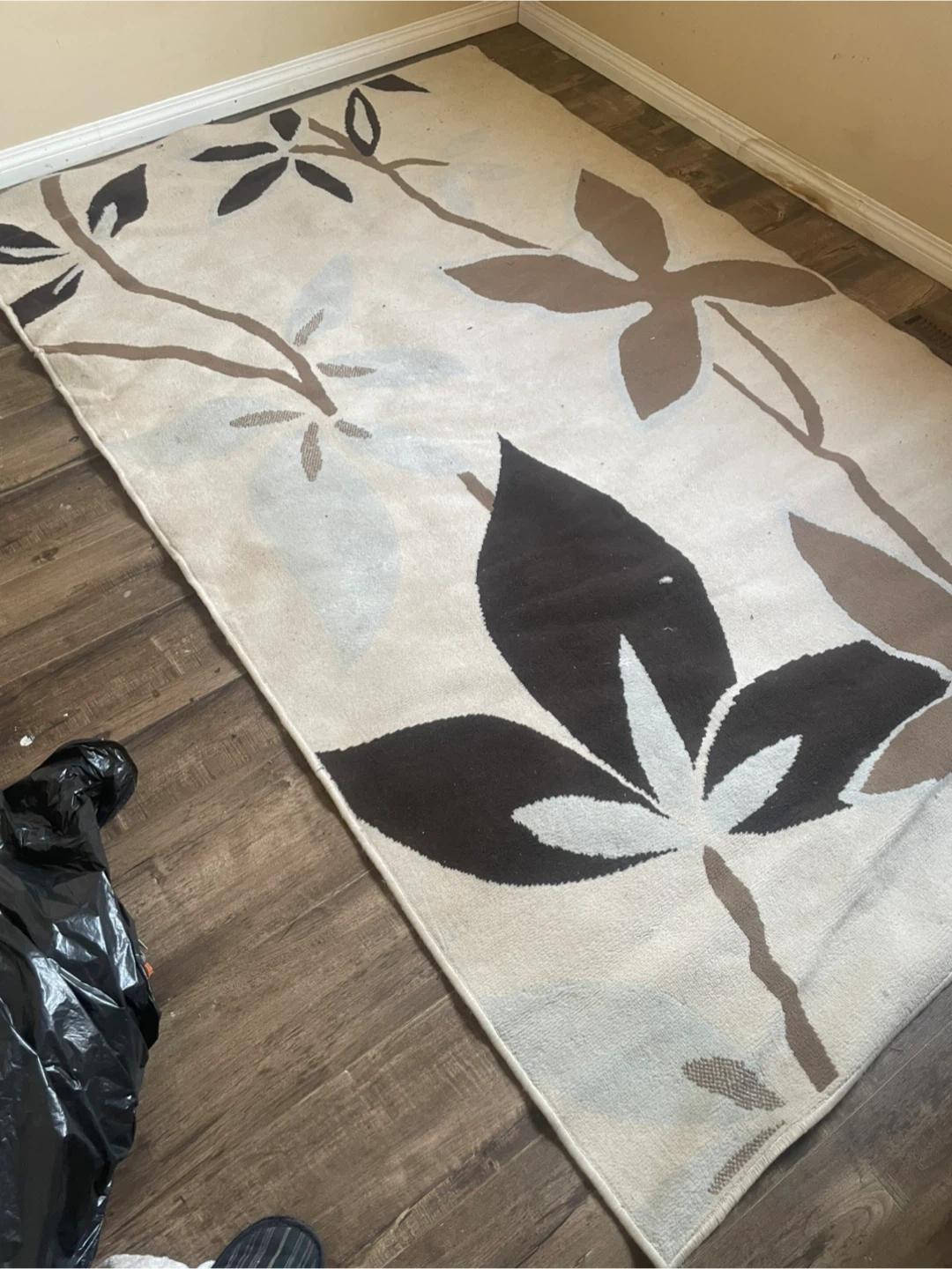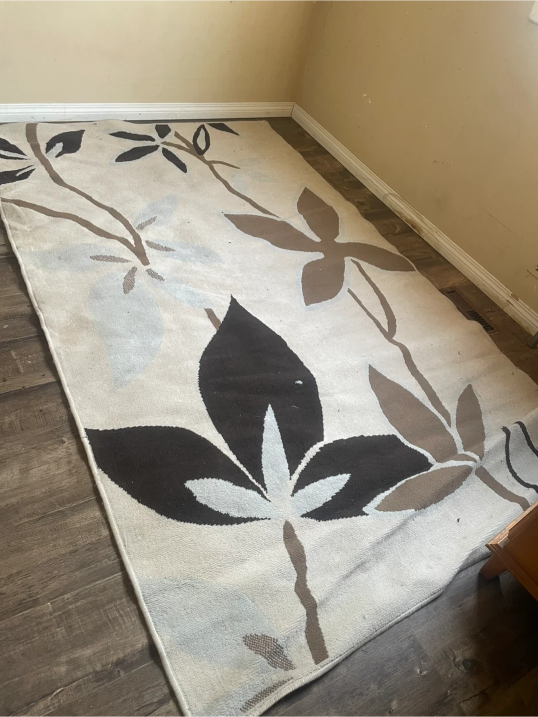 A gently used area rug with a floral pattern. It's perfect for adding a touch of nature to any room in your home. It's in great condition and ready to be used!