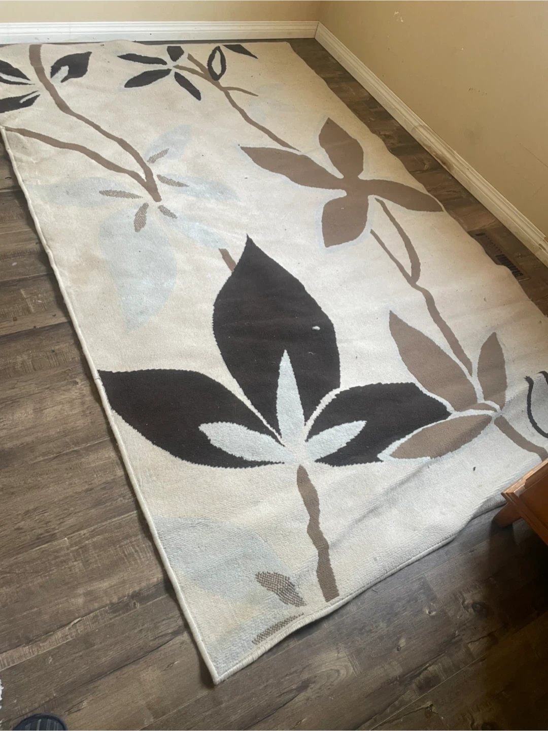A gently used area rug with a floral pattern. It's perfect for adding a touch of nature to any room in your home. It's in great condition and ready to be used!