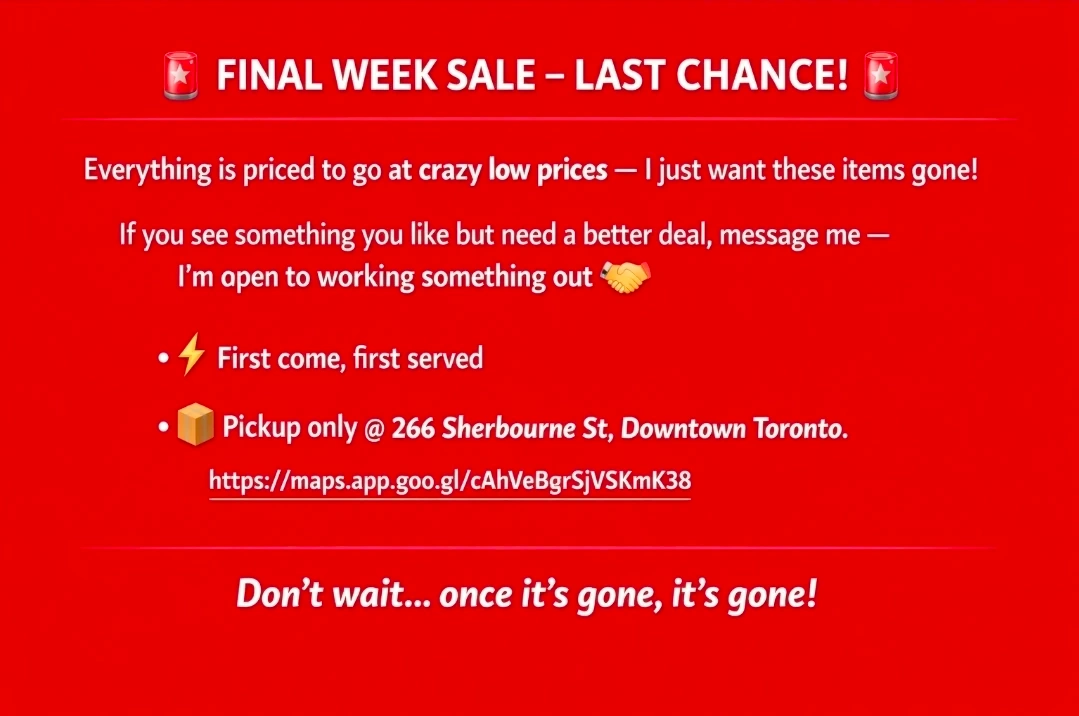 Pickup only, in downtown Toronto.
