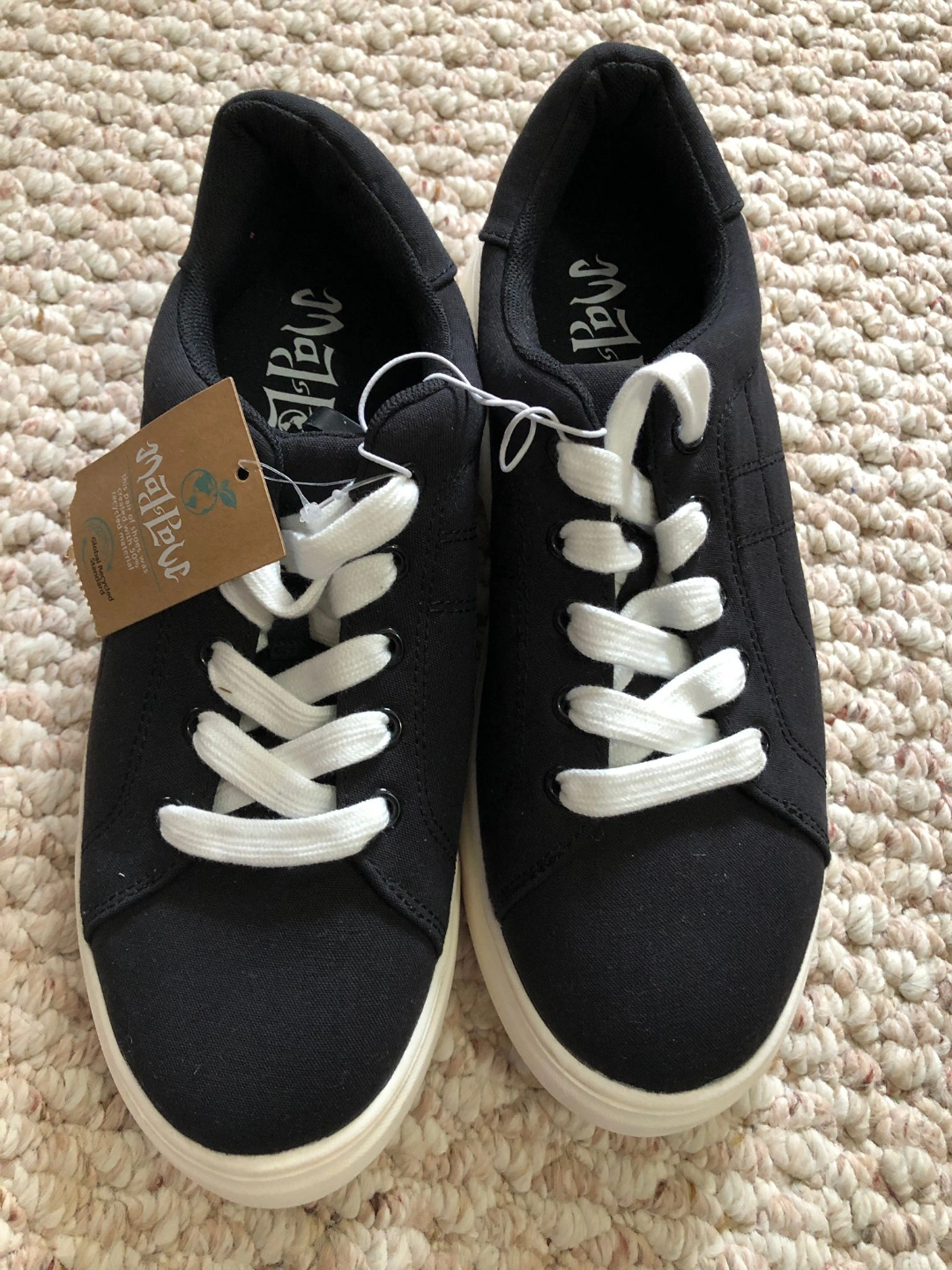Brand new Matelassé platform sneakers. Black canvas upper, white platform sole, white laces. Never worn.