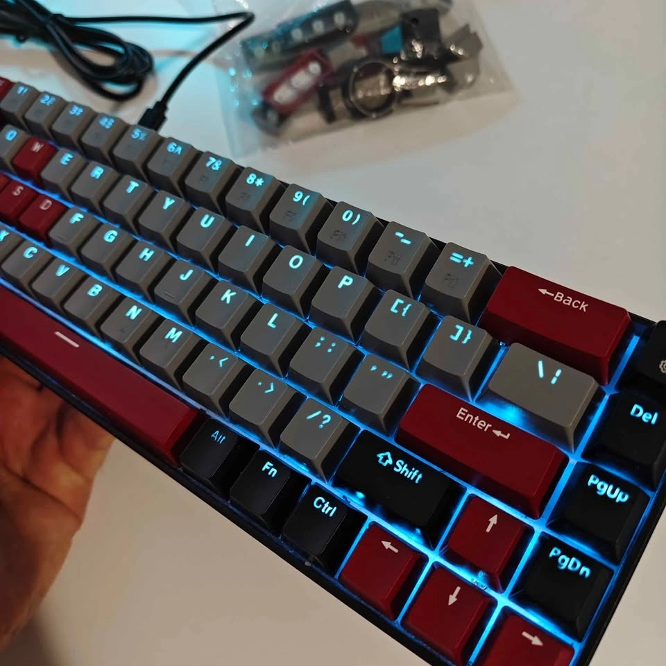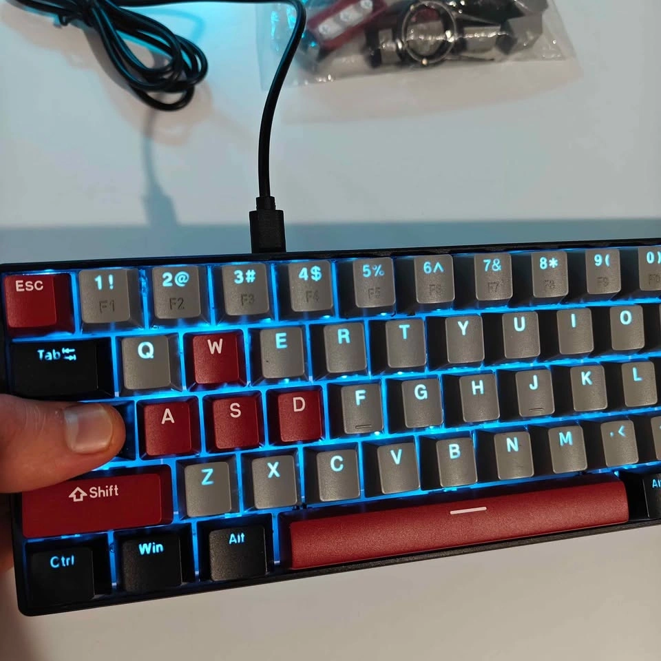 Clean and stylish 60% mechanical wired keyboard with LED backlight. Perfect for gaming or a minimal desk setup!