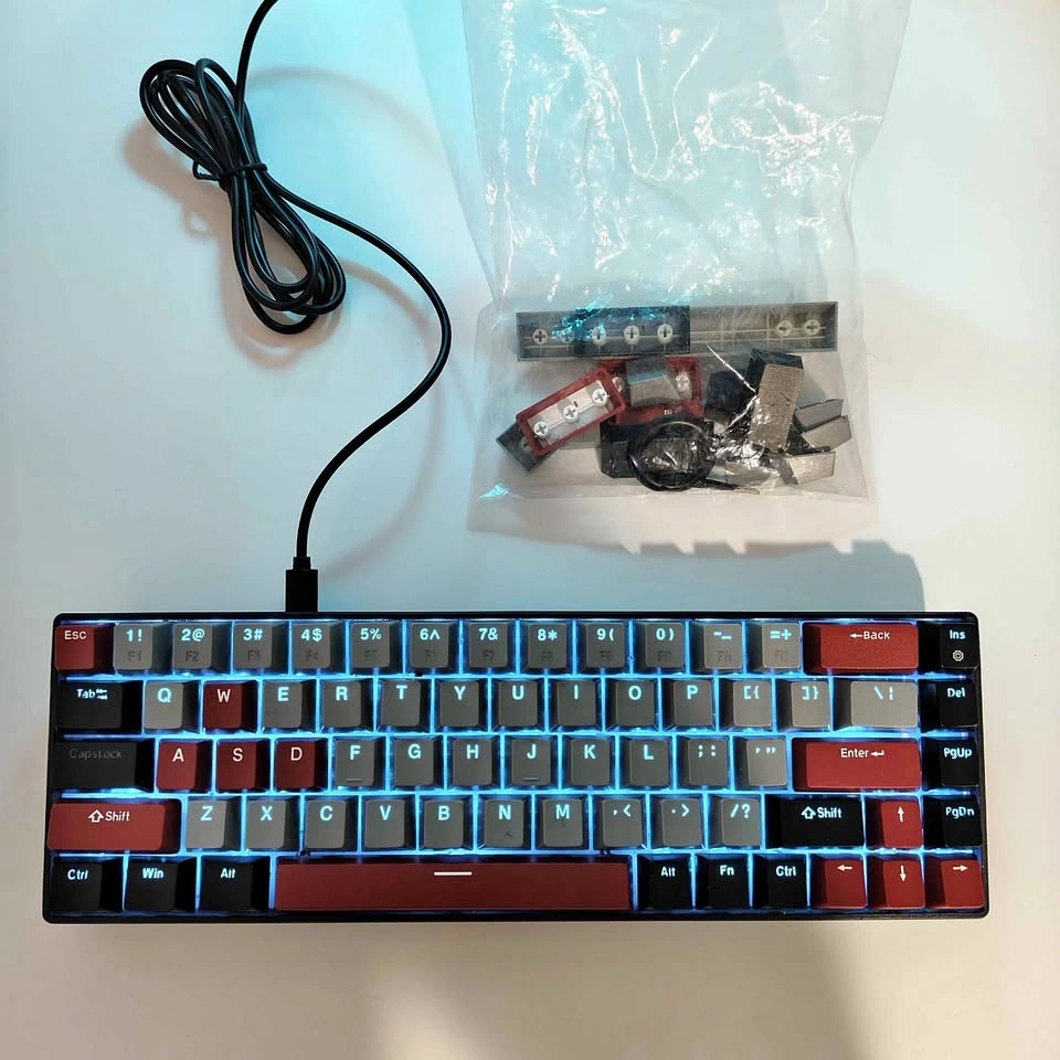 Clean and stylish 60% mechanical wired keyboard with LED backlight. Perfect for gaming or a minimal desk setup!