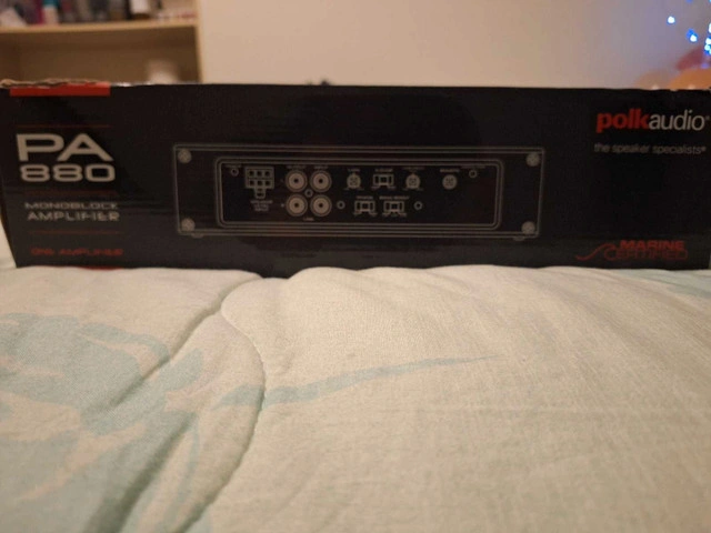 Used Polk Audio PA880 2Ch. Mono amplifier 2 Ohm stable 600 watts RMS, crossover , gain and 0.° - 180° phrase adjustments high quality bass sound for your car woofer or Subwoofer , asking for $ 120 Cash only . Please call or message 437 363 2268 for arrange time and self pickup locate in Markham area.