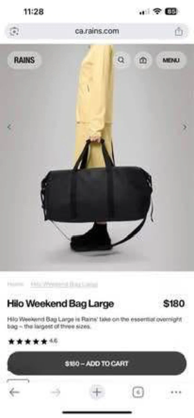 Rains Hilo Weekend Bag Large - Black