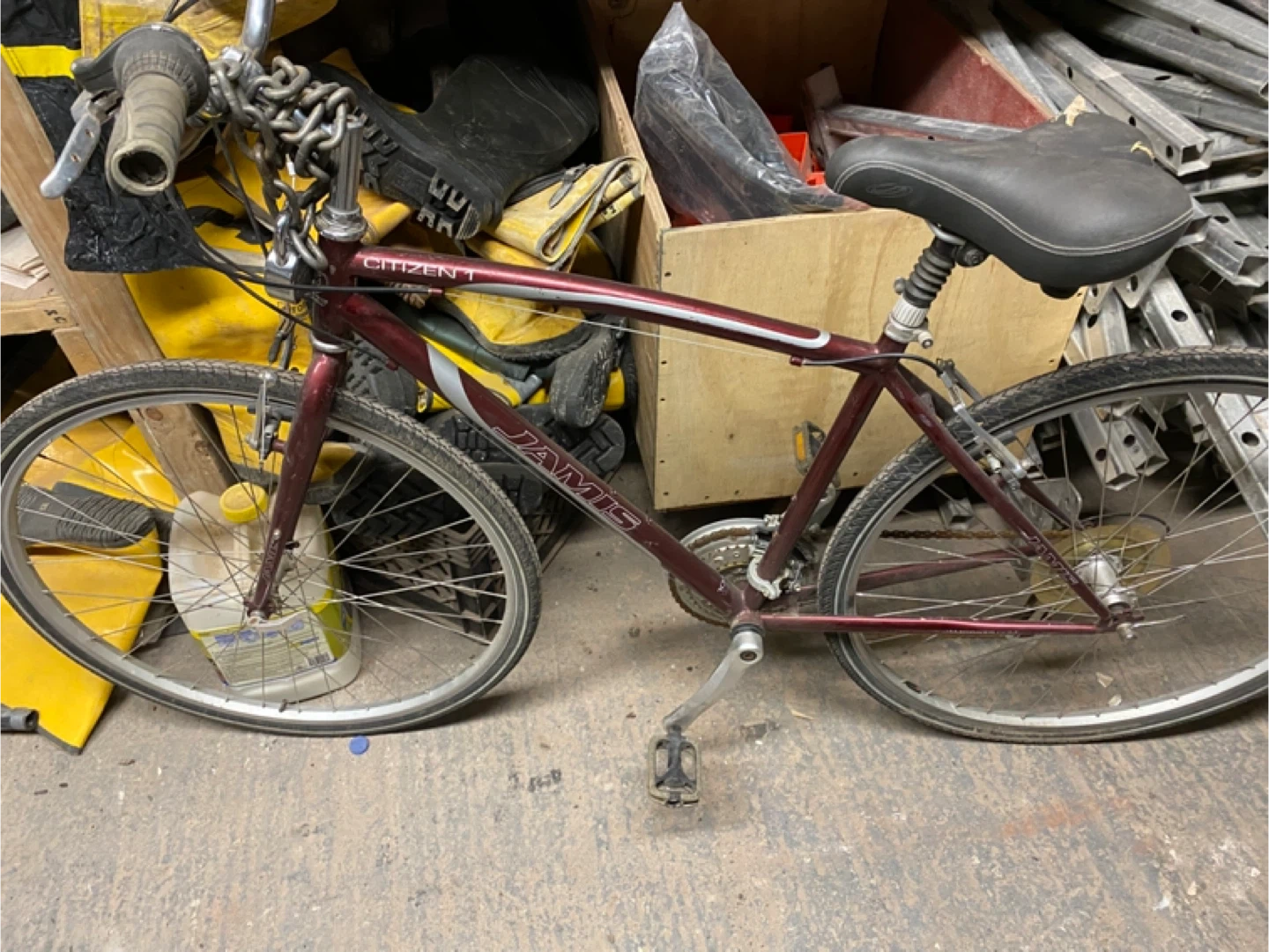 Buy & SellJamis Citizen 1 BicycleJamis Citizen 1 Bicycle$70This is a Jamis Citizen 1 bicycle. It's a maroon colored hybrid bike.WHERE TO MEETCheck LocationView MapSELLERJuanWest Bronx100 reviews7 chats·4 favorites·104 viewsSEND CHAT TO SELLERHi Juan! I’m interested in your listing.Hi Juan! I’m interested in your listing.Get the Karrot app to chatSign In to chat