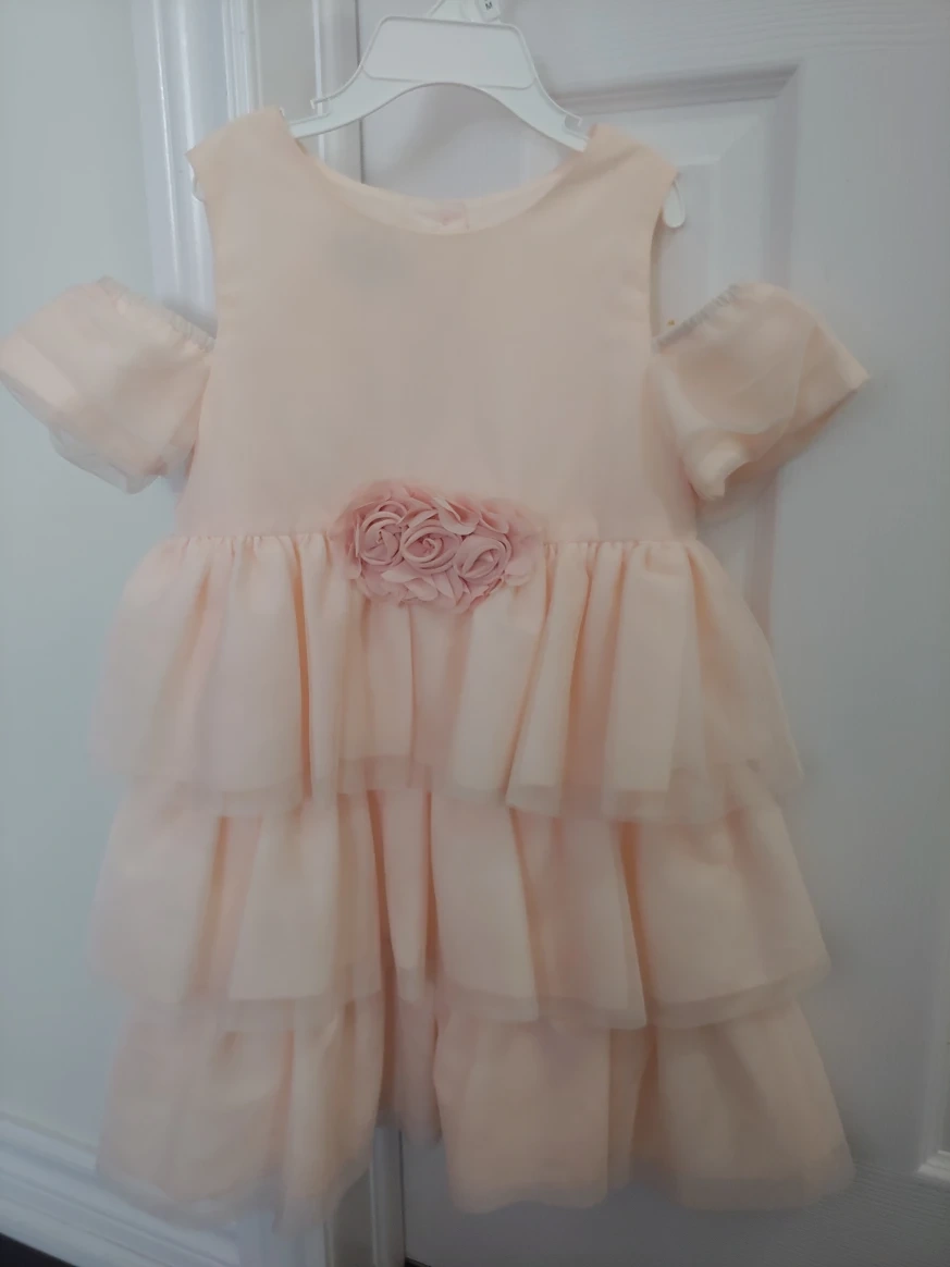 Selling a beautiful Pippa & Julie dress in a lovely light pink! It's a size 5 and features a floral detail at the waist. it was worn once, and it's in great condition.