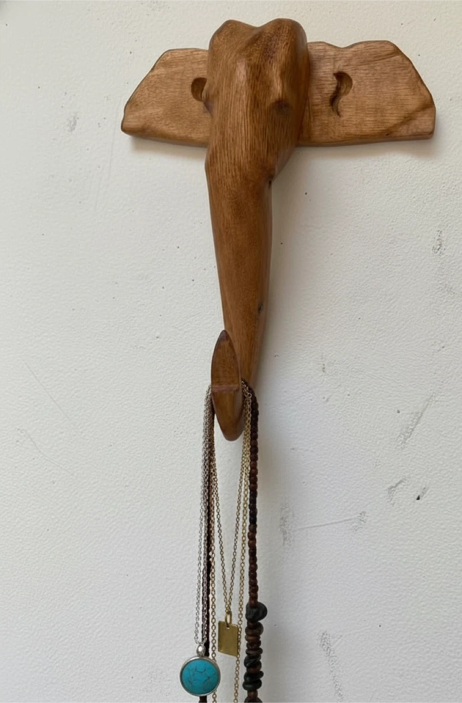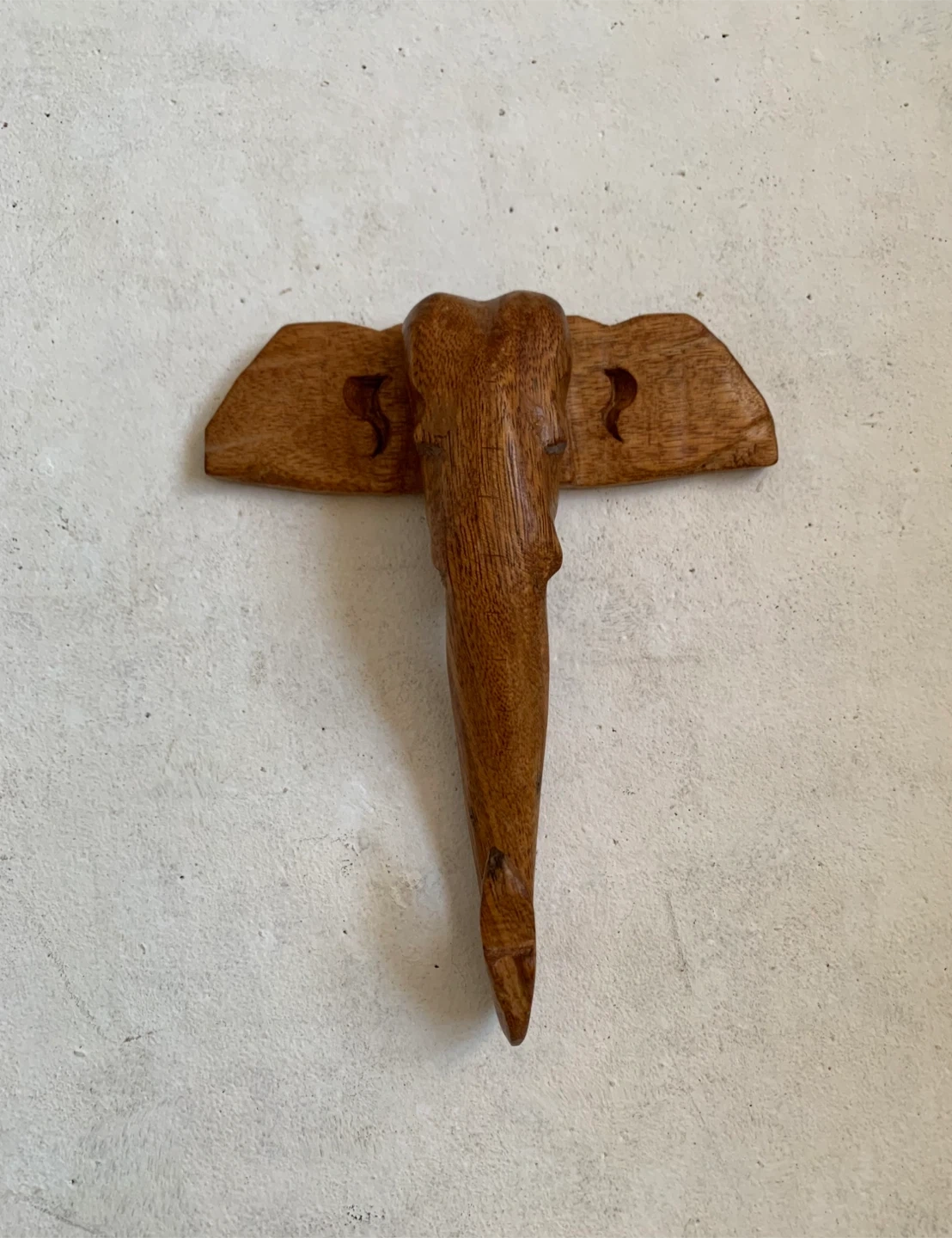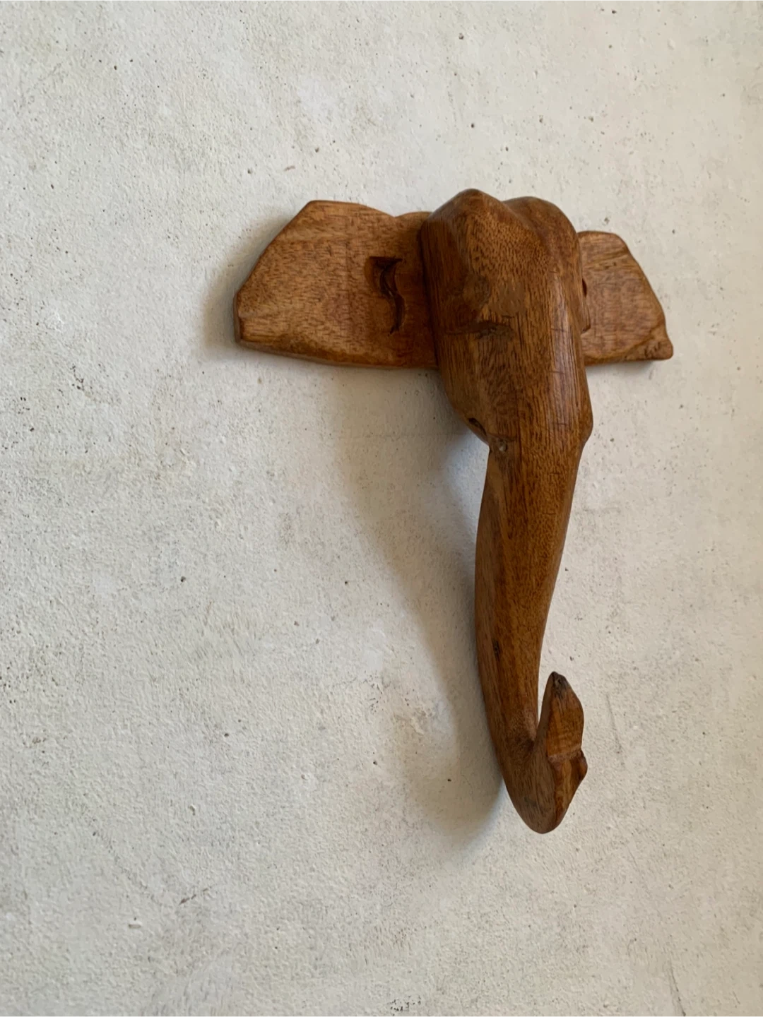 •A charming, hand-carved wooden wall hook shaped like an elephant's head. It's perfect for hanging keys, light jackets, necklaces, kitchen towels etc.