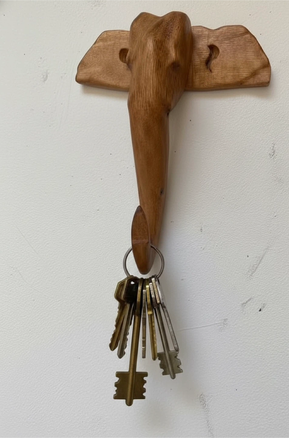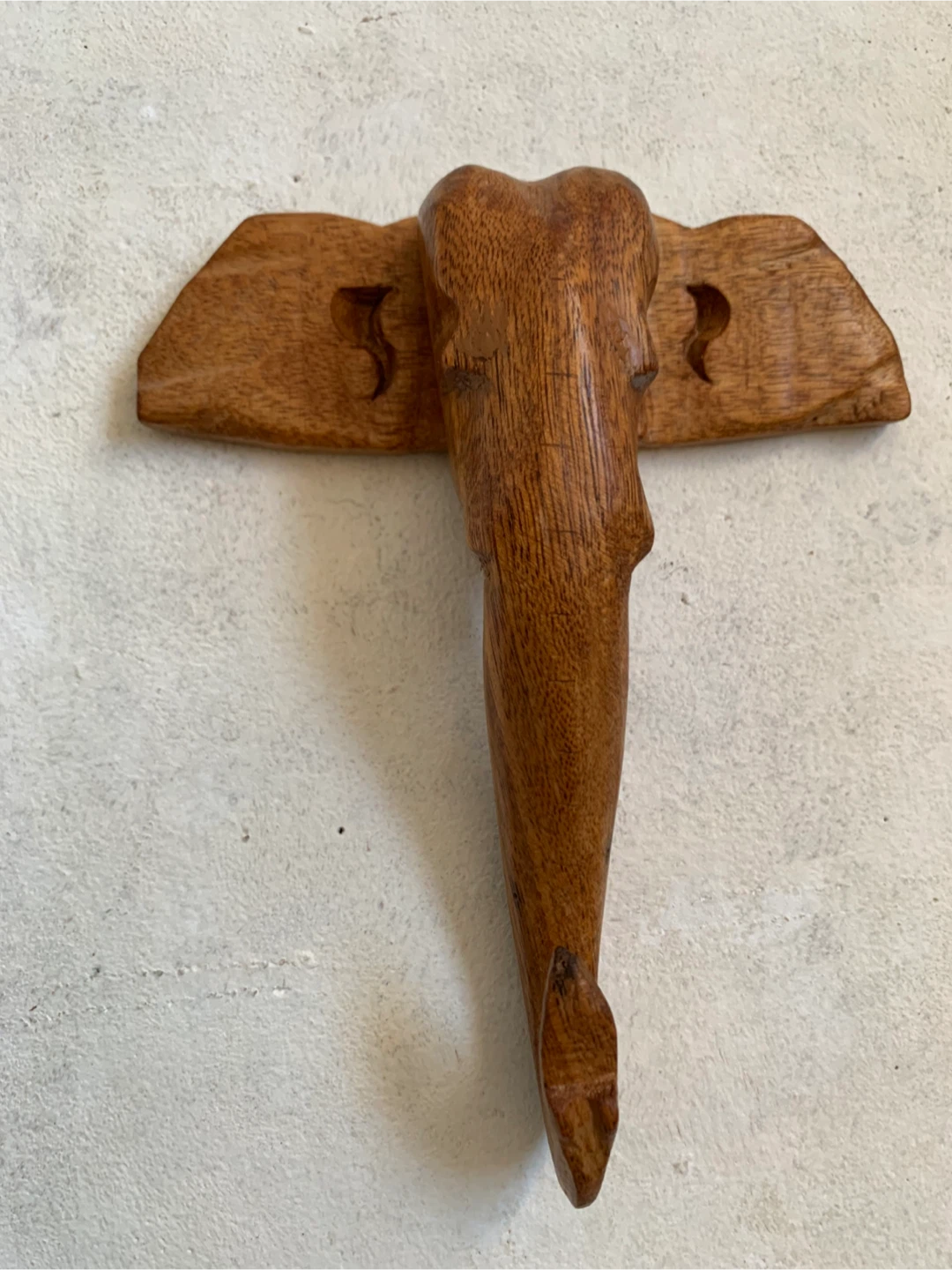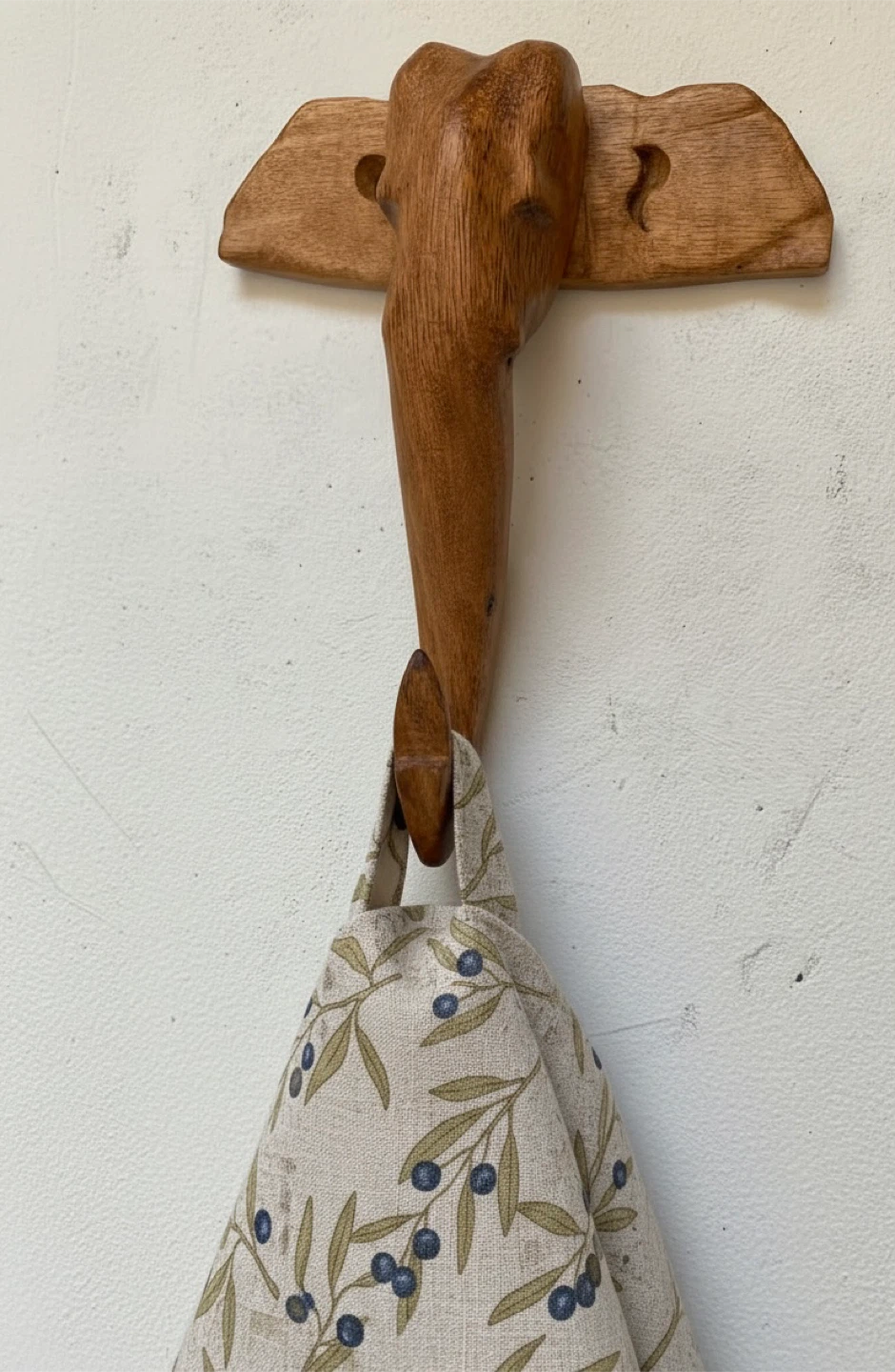 •A charming, hand-carved wooden wall hook shaped like an elephant's head. It's perfect for hanging keys, light jackets, necklaces, kitchen towels etc.