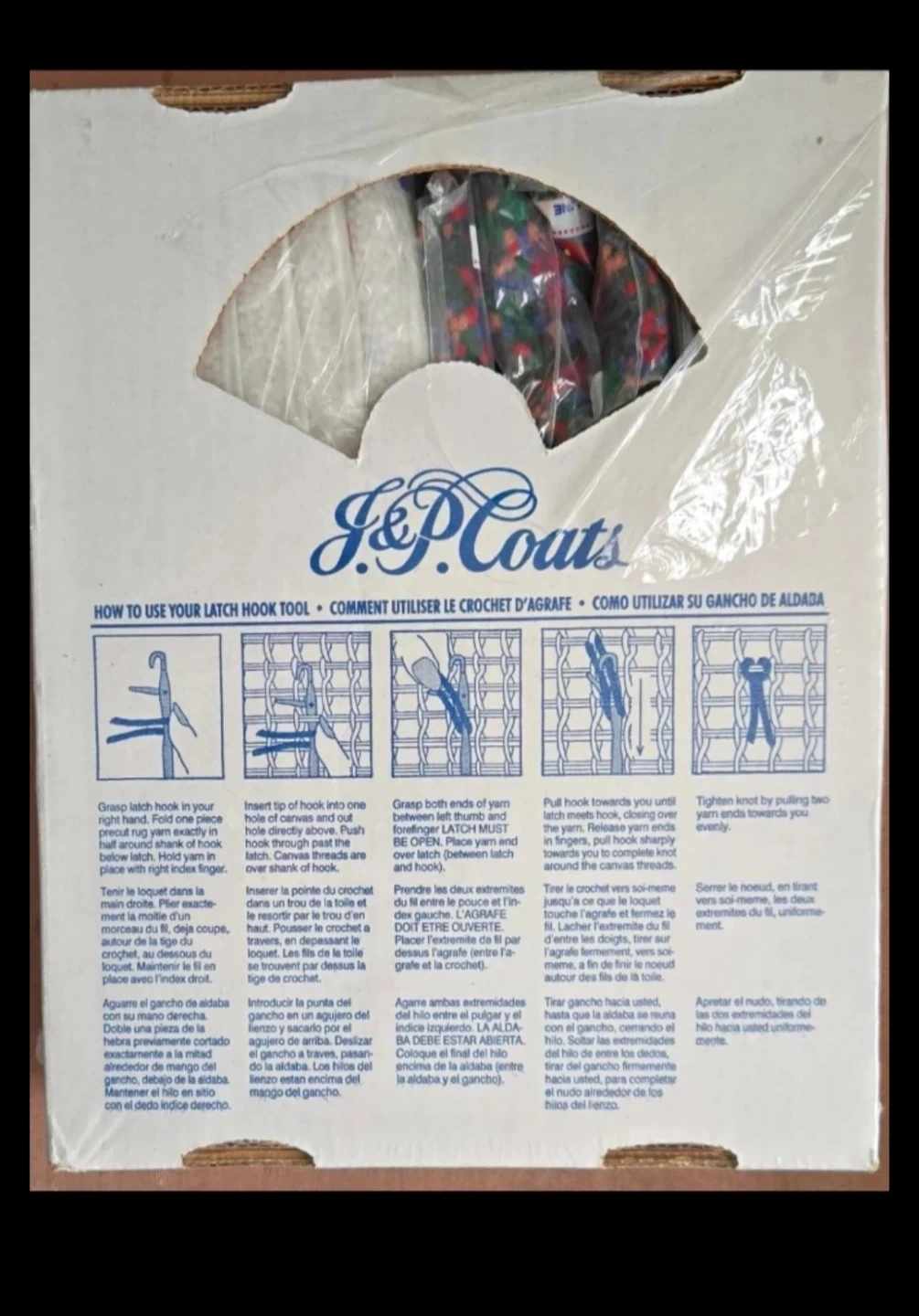 This is a J&P Coats Latch Hook kit for creating a watering can design. The approximate finished size is 27" x 20". It includes everything needed to complete the project.