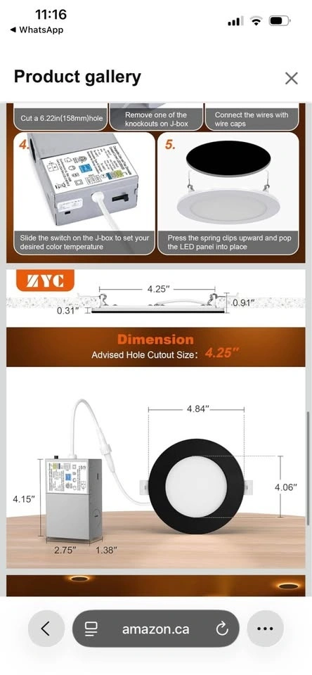 ZYC Recessed Lighting 4 Inch - 9W 800LM LED Ceiling Light with Night Light. Features 5CCT selectable colors (2700K/3000K/3500K/4000K/5000K). Ultra-thin, canless design. Pack of 6, white.
