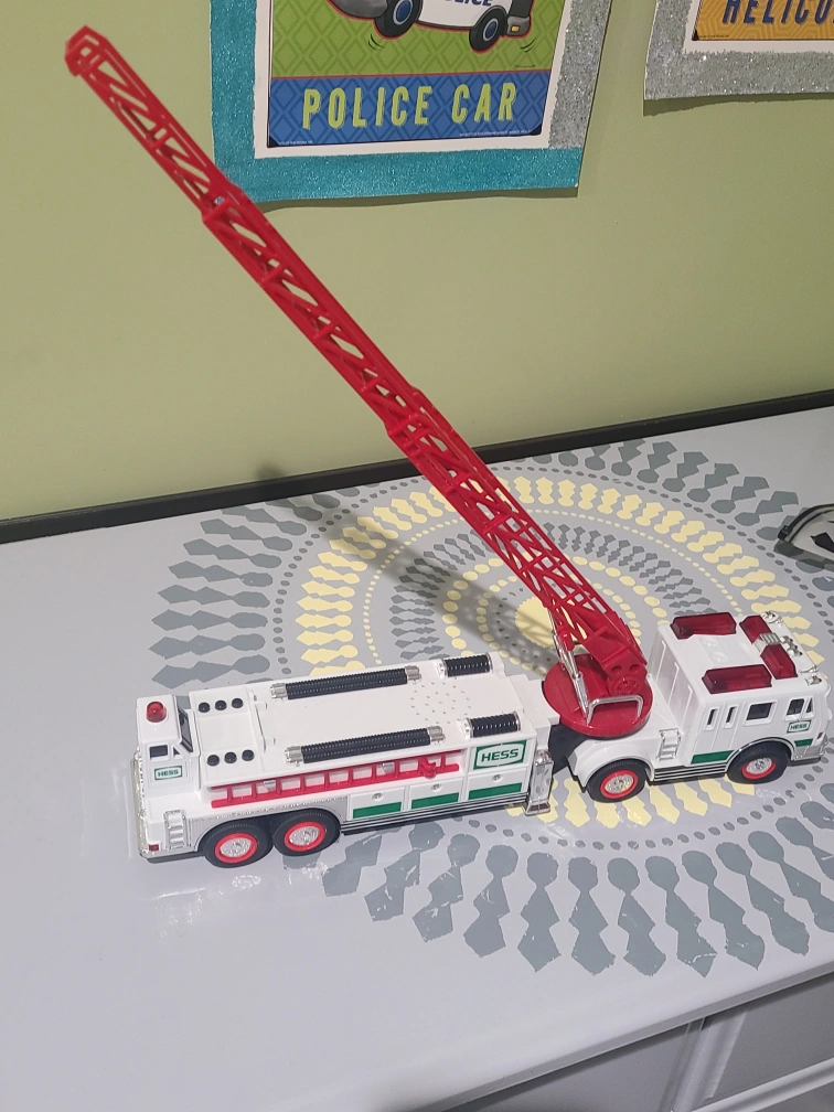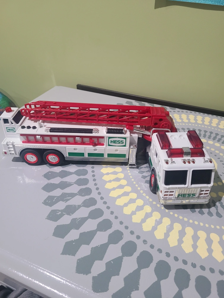 selling Hess toy truck and rescue vehicle. comes with batteries, with realistic sounds.