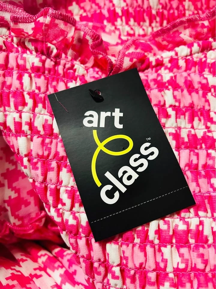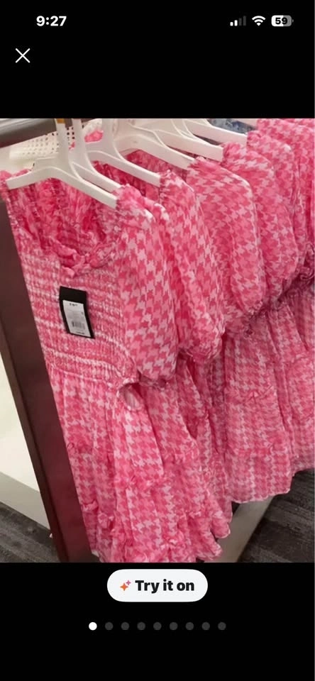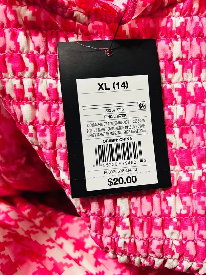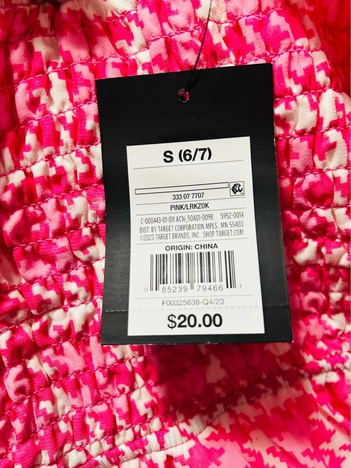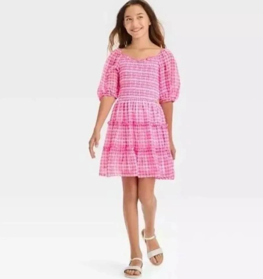 Selling a 6-piece lot of girls' A New Day (Target brand) dresses. Perfect for resellers! Each dress comes with a size-appropriate hanger and has its original tag priced at $20 each. The lot's MSRP is $120. Dresses feature a bright pink & white houndstooth pattern and a smocked bodice. Short puff sleeves and a ruffled neckline add a playful touch. Lightweight fabric with a lining.