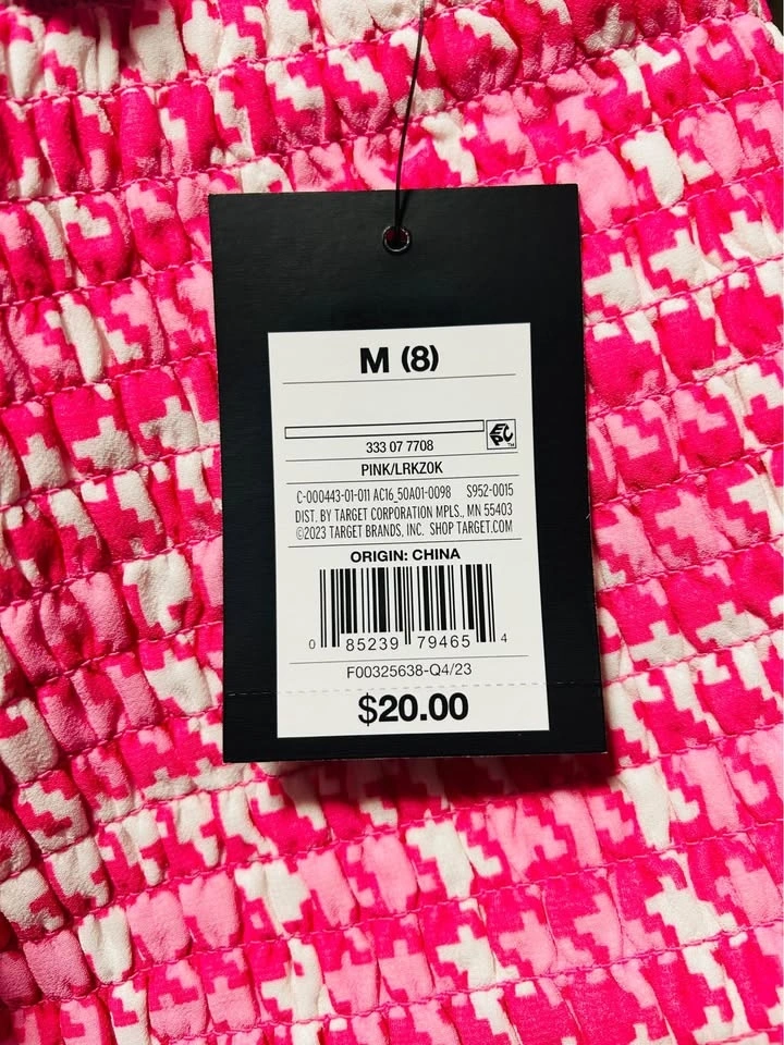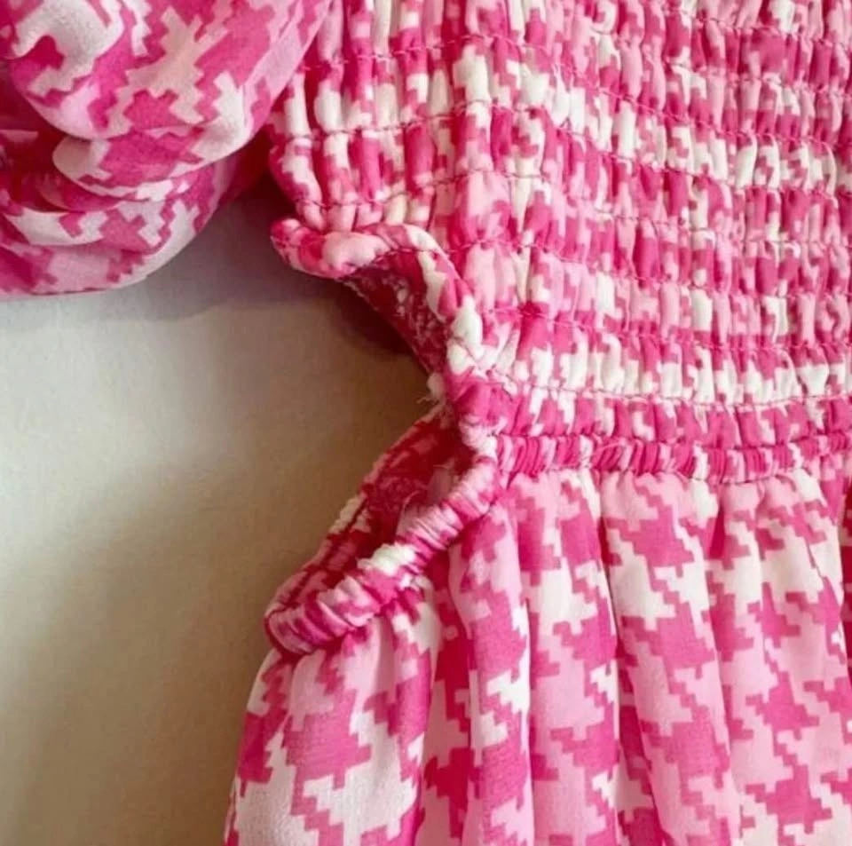 Selling a 6-piece lot of girls' A New Day (Target brand) dresses. Perfect for resellers! Each dress comes with a size-appropriate hanger and has its original tag priced at $20 each. The lot's MSRP is $120. Dresses feature a bright pink & white houndstooth pattern and a smocked bodice. Short puff sleeves and a ruffled neckline add a playful touch. Lightweight fabric with a lining.