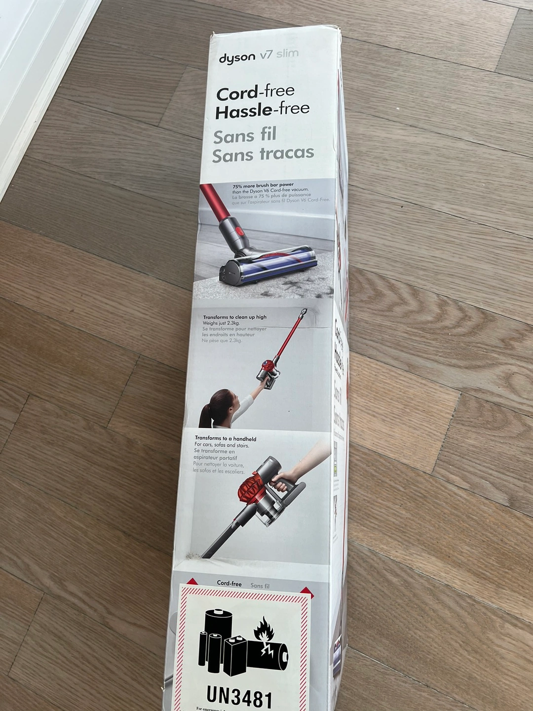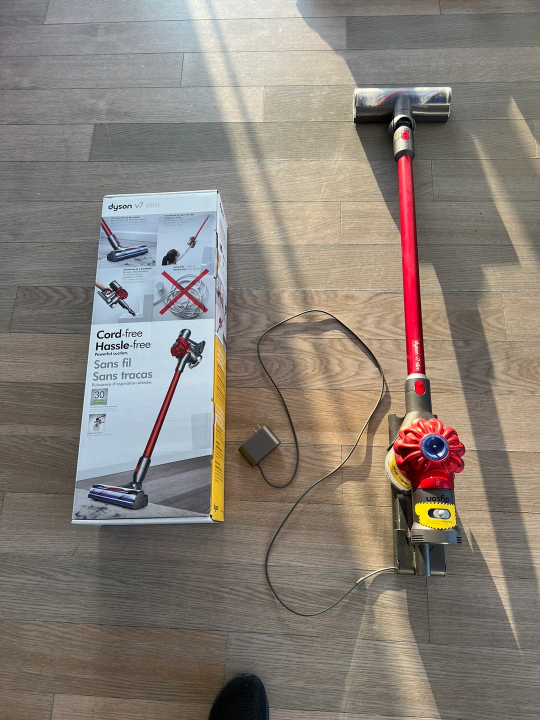 Selling my Dyson v7 slim. Barely used, all original packaging, bought for 350 plus tax. Selling cause I’m moving out of the country.