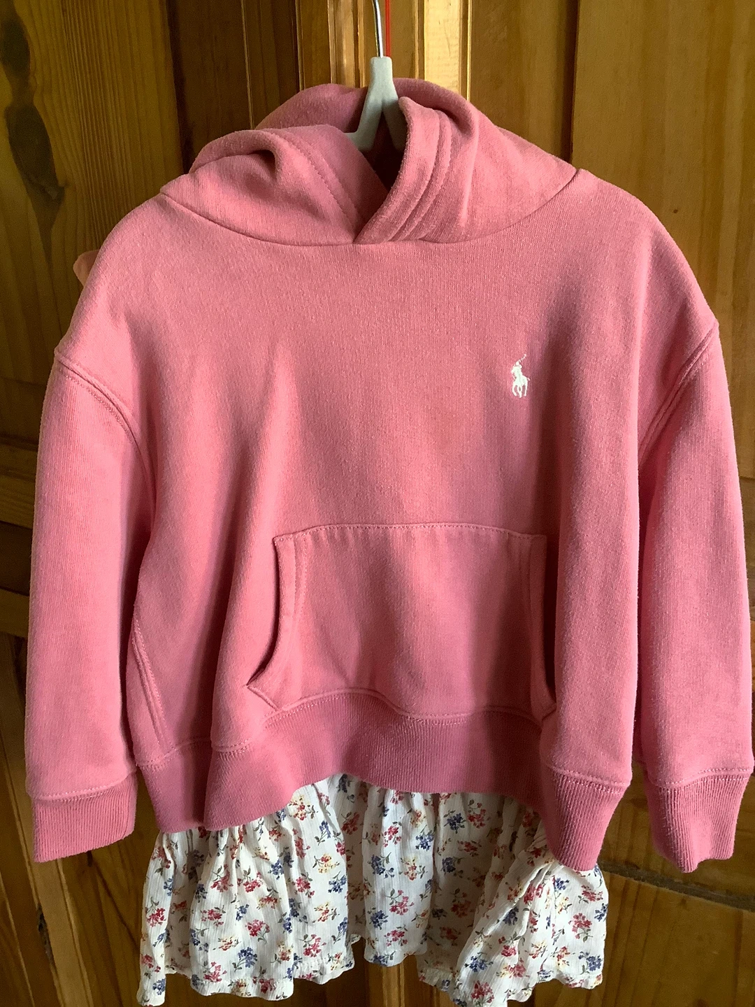 Four kids' hoodies included in this bundle. Features a pink Ralph Lauren hoodie with the iconic pony logo. Also includes a bright pink Adidas hoodie with a large logo graphic. A light lavender GAP zip-up hoodie is also part of the lot. Finally, a heather grey zip-up hoodie completes the collection. Comfortable and casual wear for kids!