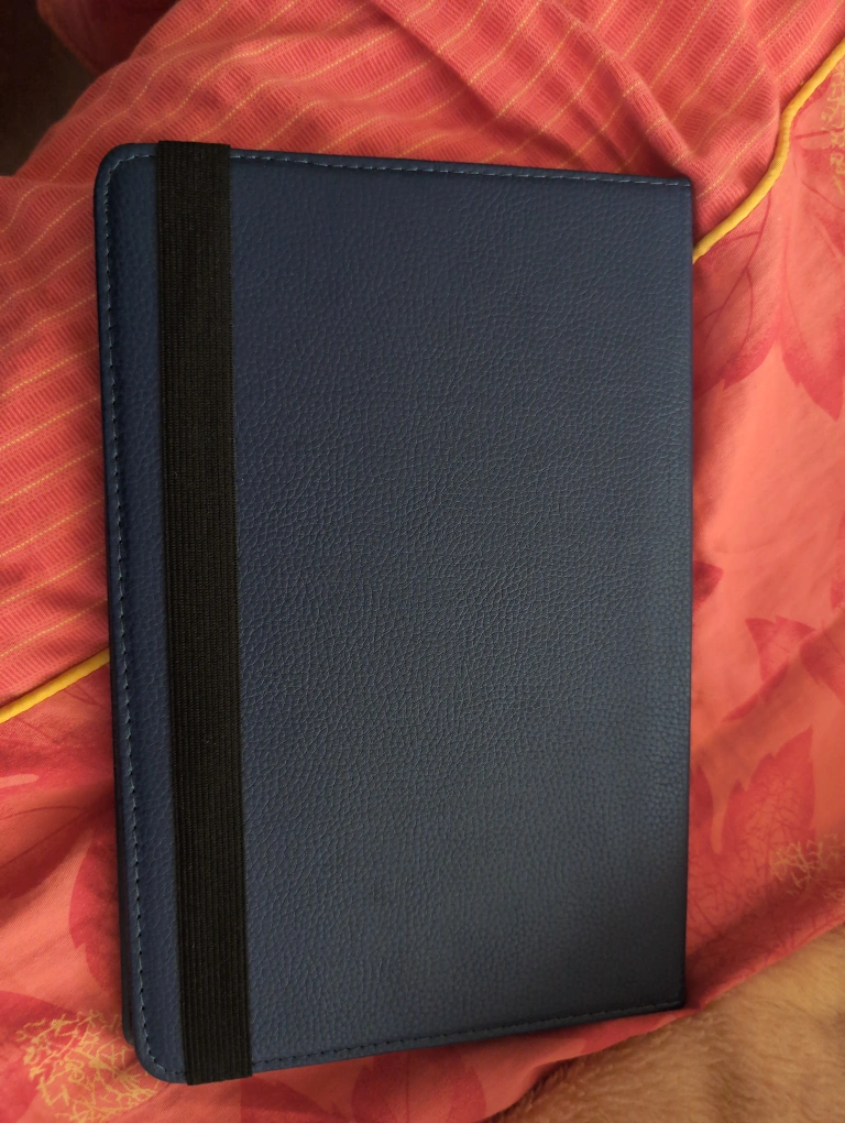 Blue case with elastic band. Fits Samsung Galaxy Tab A9+, open box only used twice, didn't like the android system more prefer iPad. also with the screen protector.