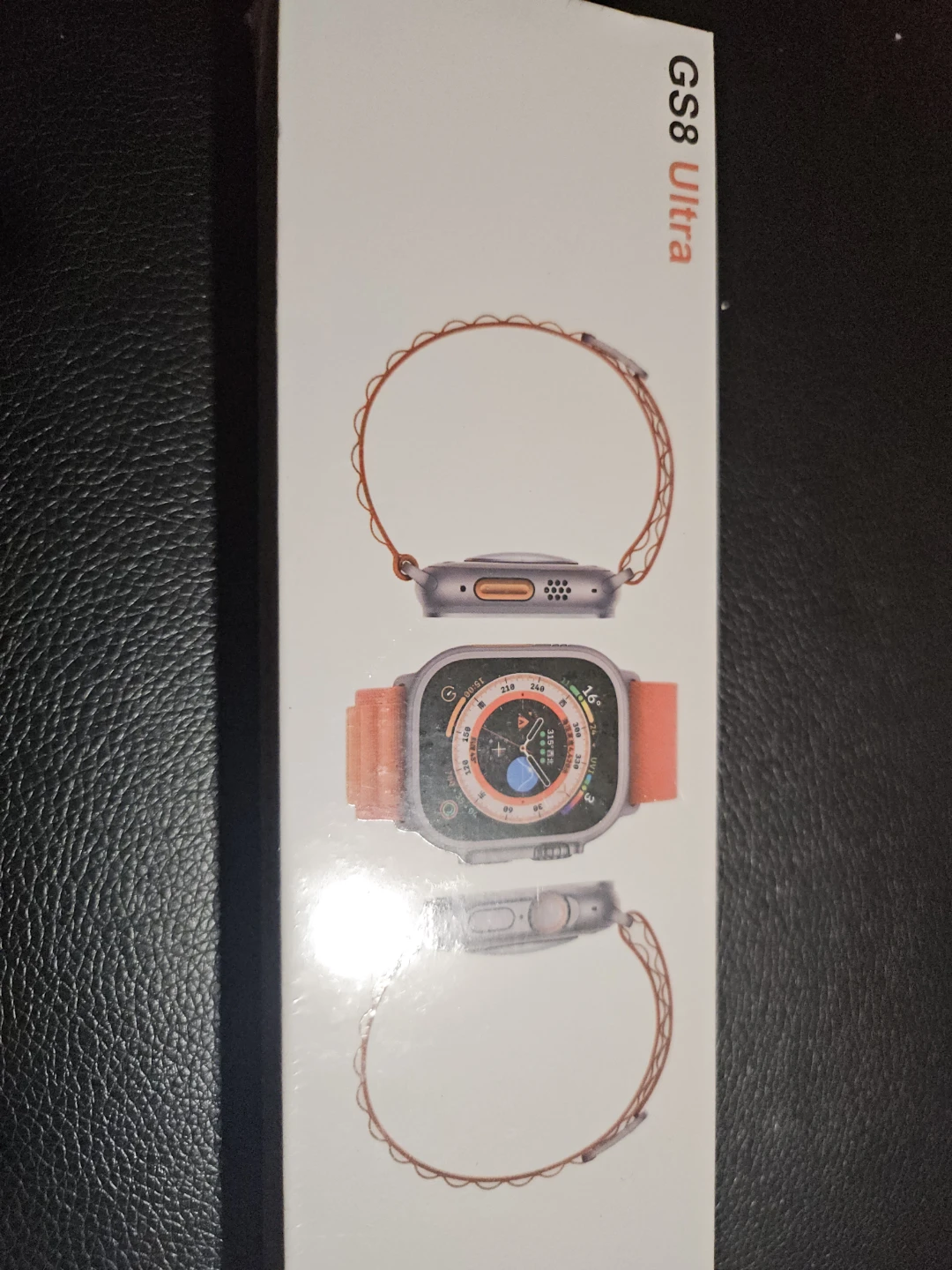 Selling a GS8 Ultra smartwatch in titanium color with a starlight sport band. It's waterproof and includes Bluetooth heart rate tracking.