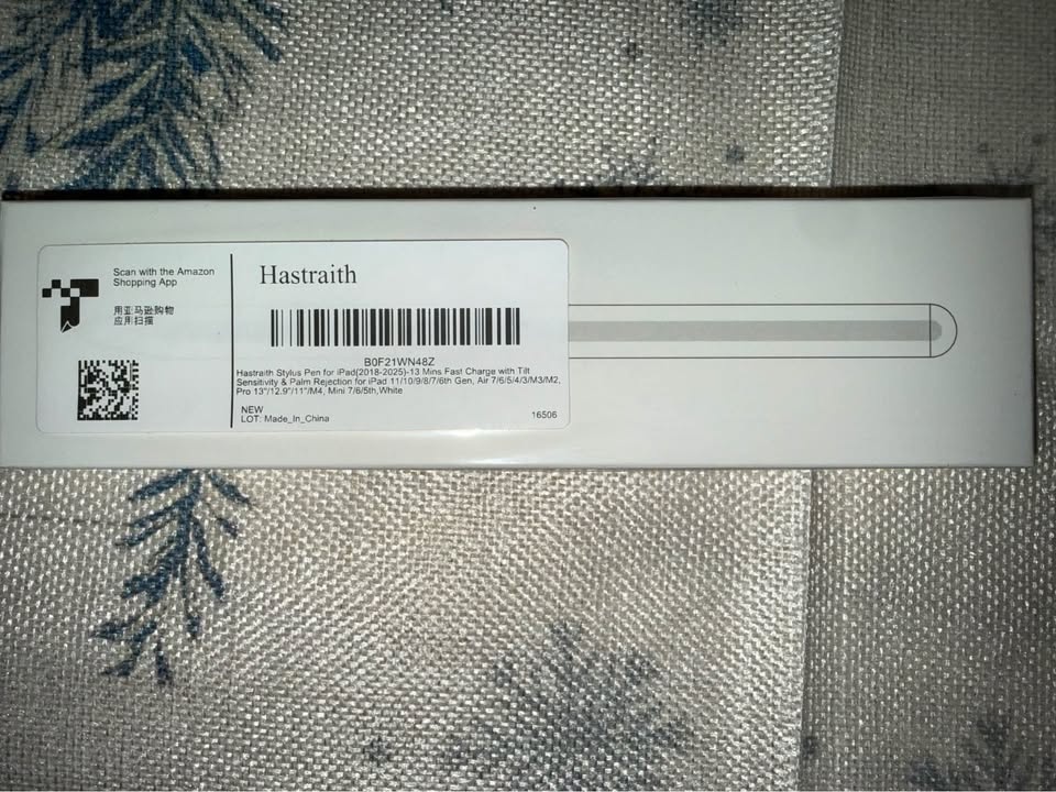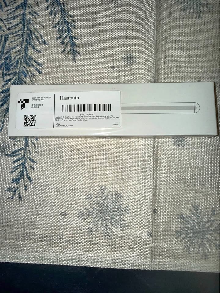 Brand new Hastraith stylus pen for iPad. Has 13 mins fast charge with tilt sensitivity and palm rejection. Compatible with various iPad models including 2018-2025 models. White in color.