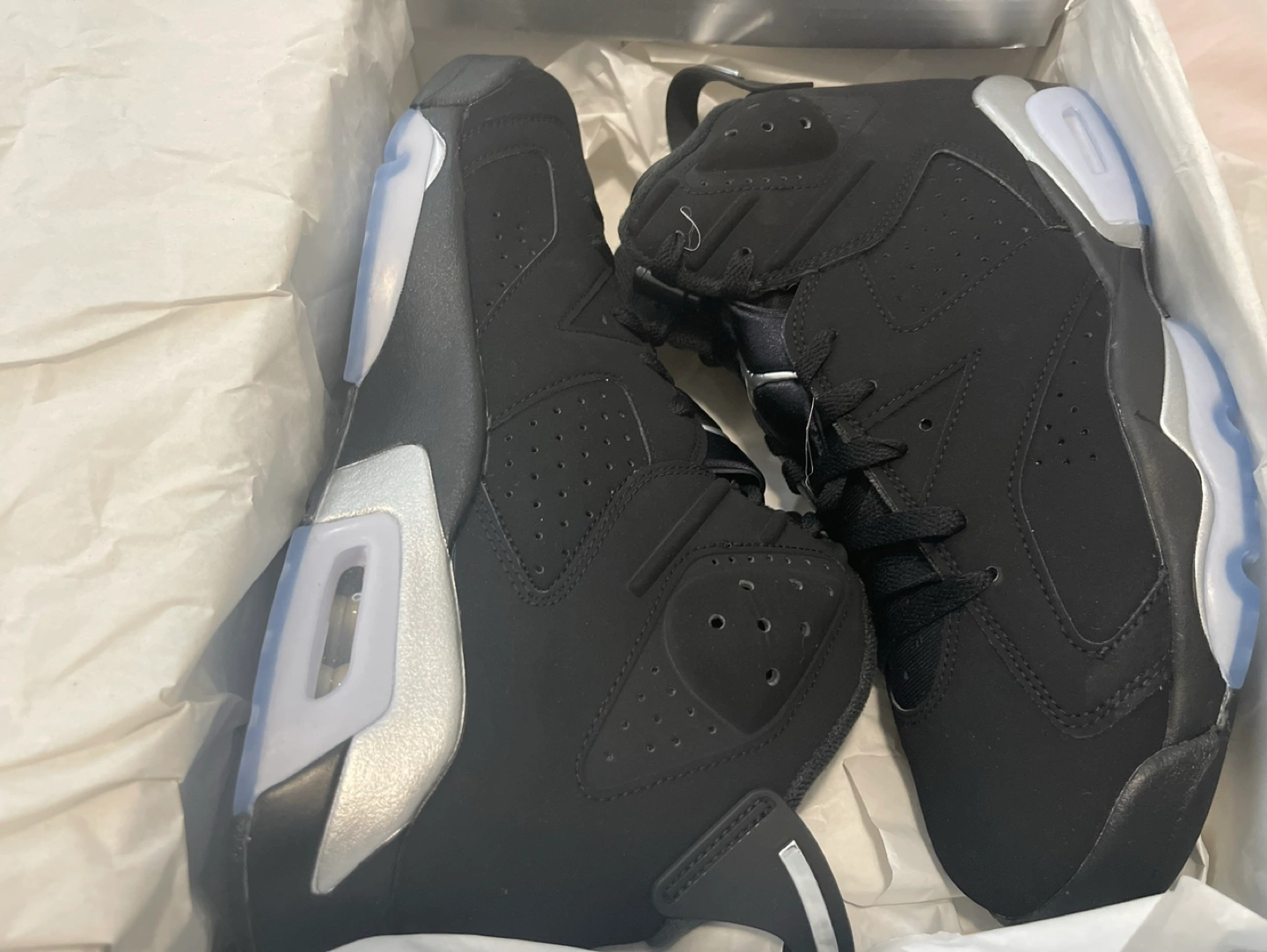 Buy & SellAir Jordan 6 RetroAir Jordan 6 Retro$250Men’s Size 10.5 Air Jordan 6 Retro Silver and black. Never worn. Still in box.pickup onlySize10.5BrandAir JordanWHERE TO MEETHoneycrisp CrescentView MapSELLERPreciousConcord242 reviews1 chats·0 favorites·31 viewsSEND CHAT TO SELLERHi Precious! I’m interested in your listing.Hi Precious! I’m interested in your listing.Get the Karrot app to chatSign In to chat