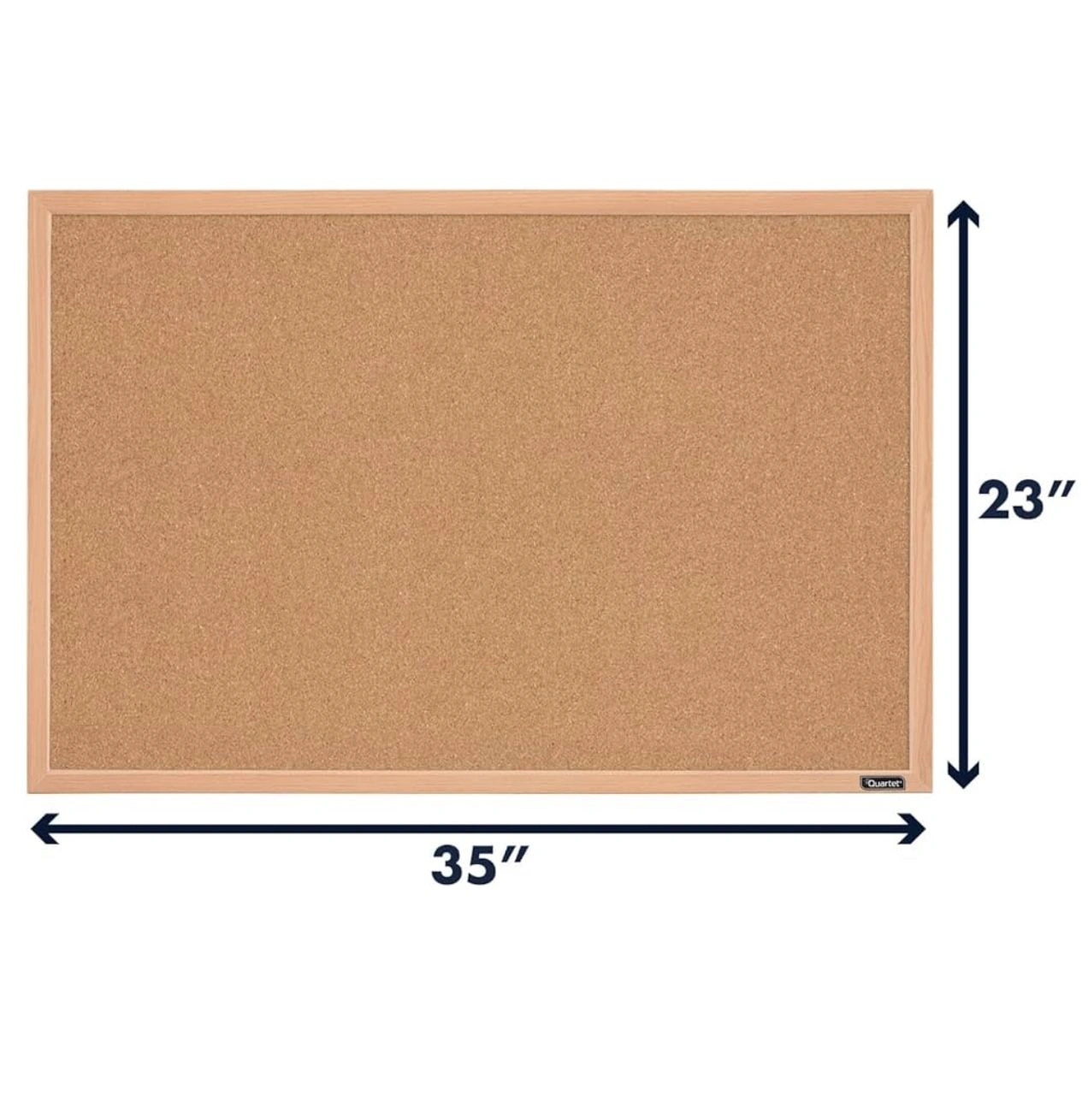 Quartet Cork Board Bulletin Board, 23" x 35" Framed Corkboard, Oak Frame, Decorative Hanging Pin Board, Perfect for Office & Home Decor, Home School.