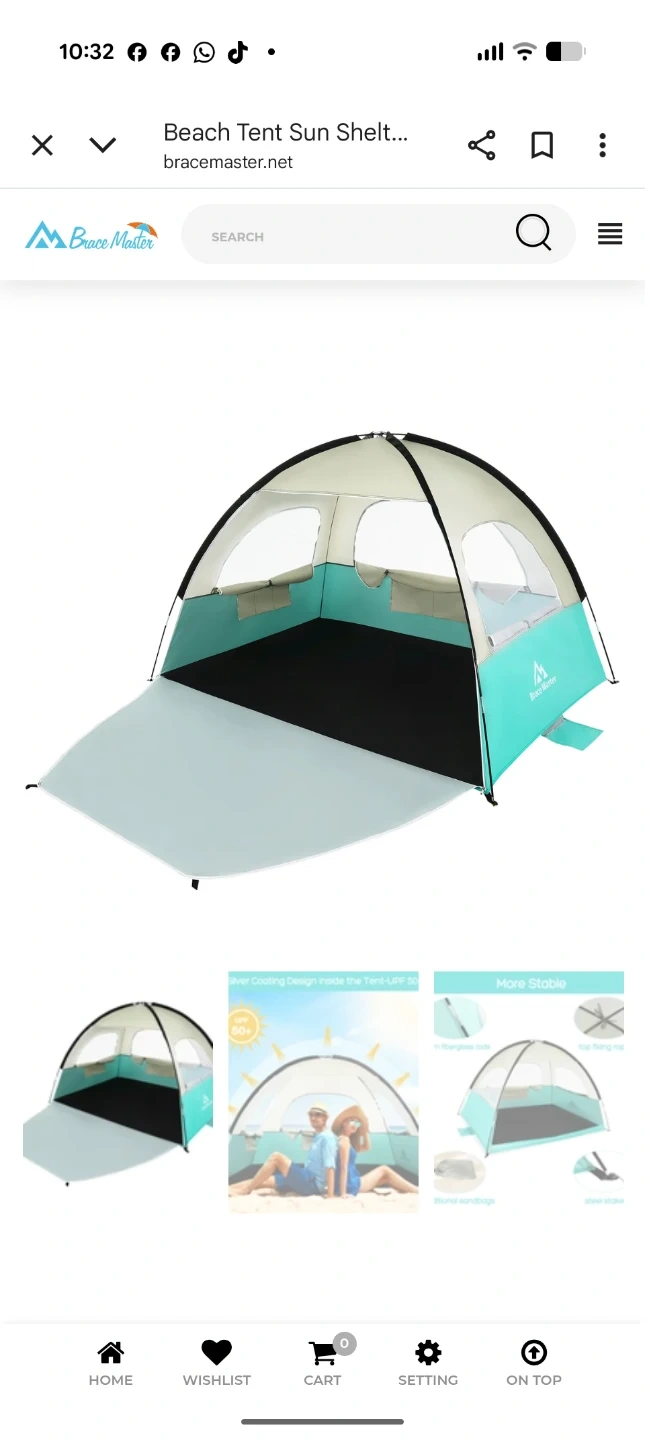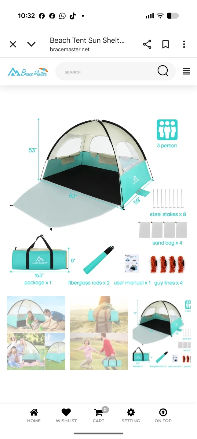 Brace Master Beach Tent Sun Shelter - 3 Person