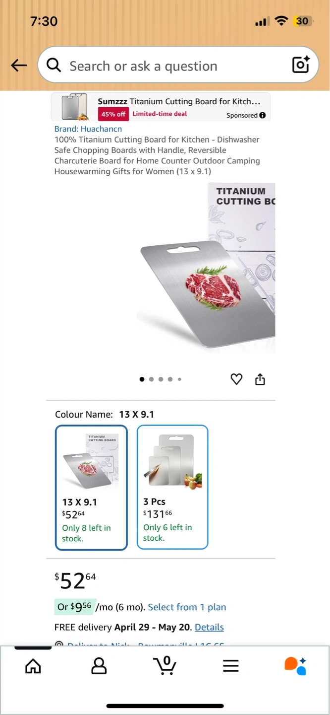 NEW! Titanium Cutting Board 14x10